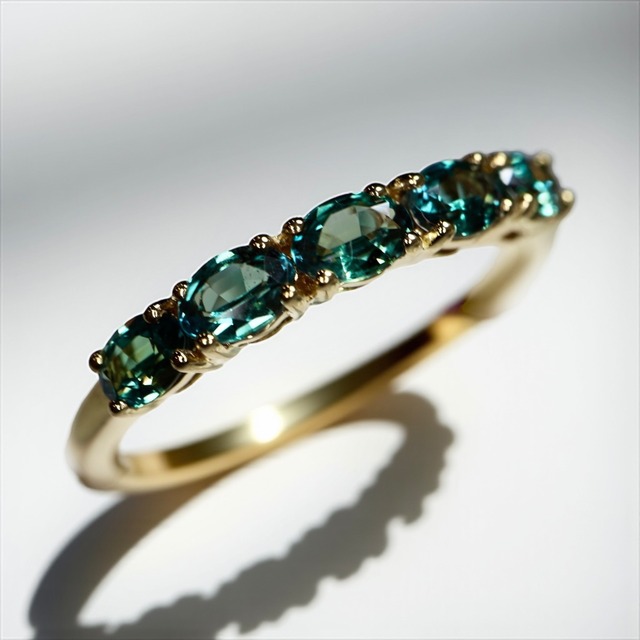 高品質のアレキサンドライト粒だけを厳選しダイヤモンドと交互になったハーフエタニティリング。 地色から非常に美しい青立ちしたピーコックグリーン。 地色の鮮やかさ、透明感、そして抜群のカラーチェンジ。 カラーチェンジする宝石の中でも王座に君臨するアレキサンドライトですが高品質のアレキサンドライトにダイヤモンドの煌めきをプラスした並びはやはり圧巻の美しさです。 【共有留め】 ▫️pt900 ▫️アレキサンドライト33ct ▫️ダイヤモンド0.23ct ▫️リングサイズ12号 ▫️リング幅 センター縦幅2.7㎜/腹側2.3 3㎜ ▫️重さ4.0g