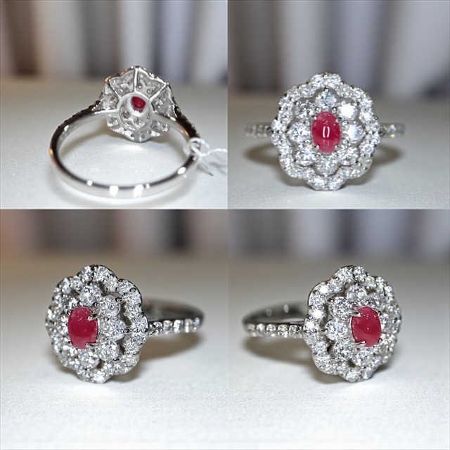高品質ビルマ産レッドスピネルダイヤモンドリングpt950/K18PG レッドスピネル1.21ct D0.15ct