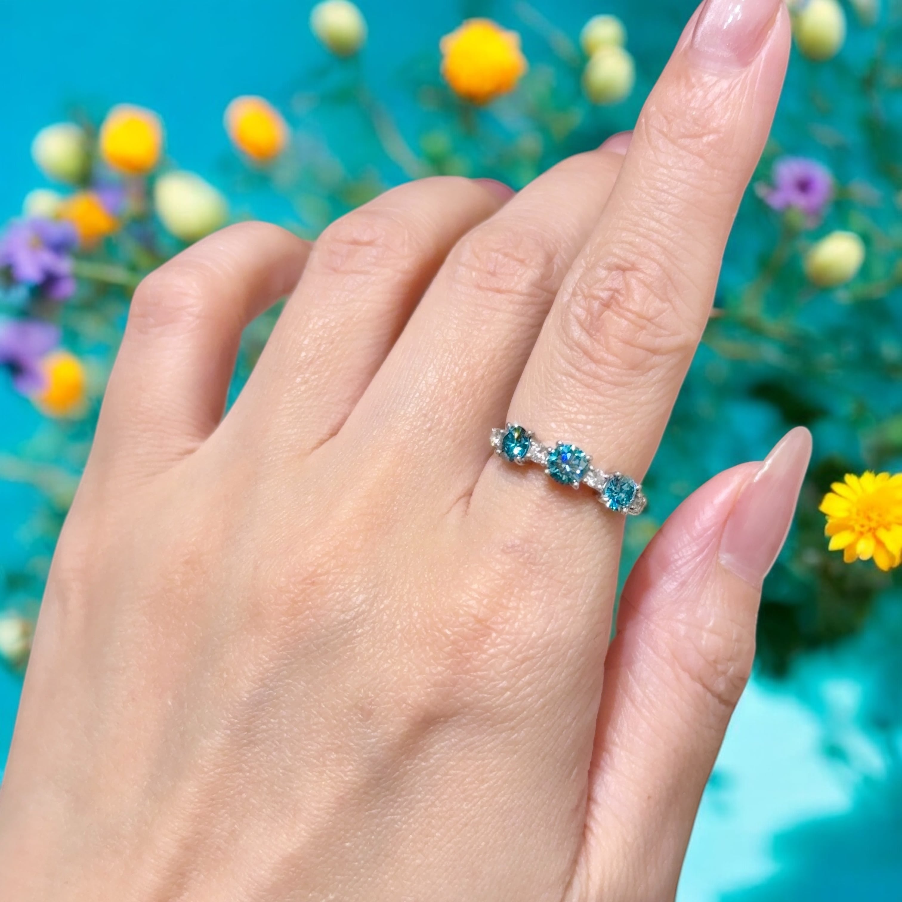 pt900トリートブルーダイヤモンド3ストーンリングD1.20ct