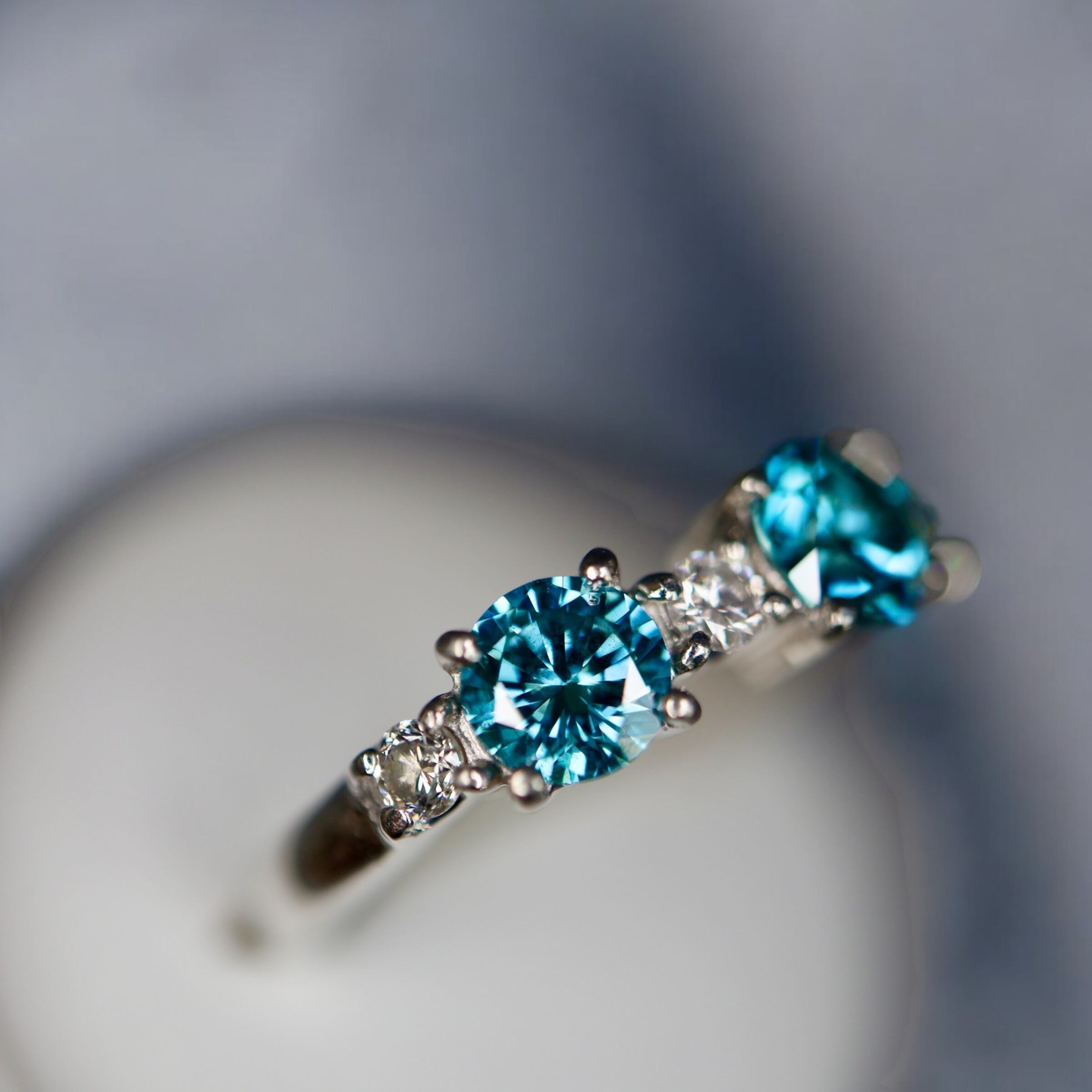 スリーストーンのブルーラウンドなのでやはり抜群の存在感と輝きを放ちます✨
