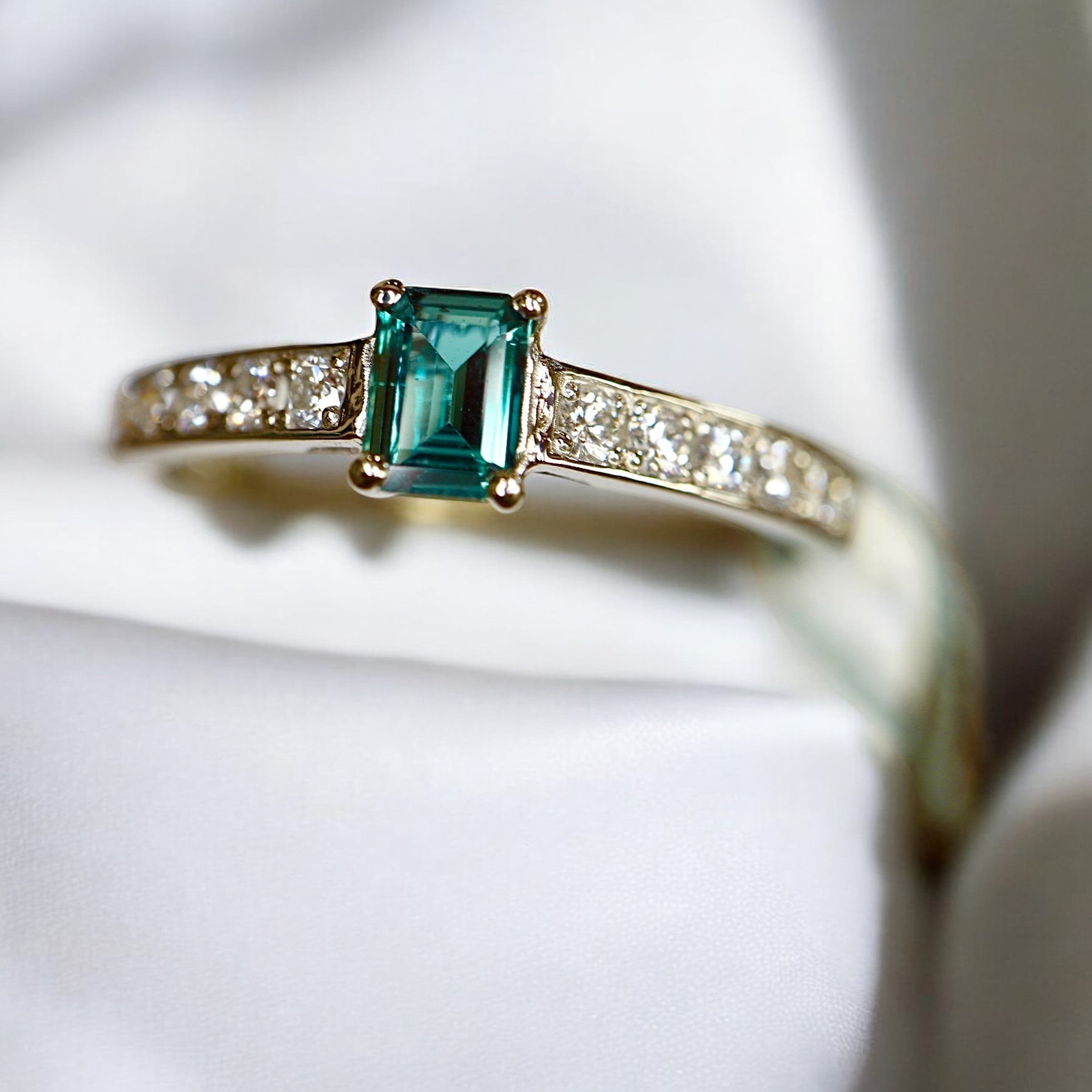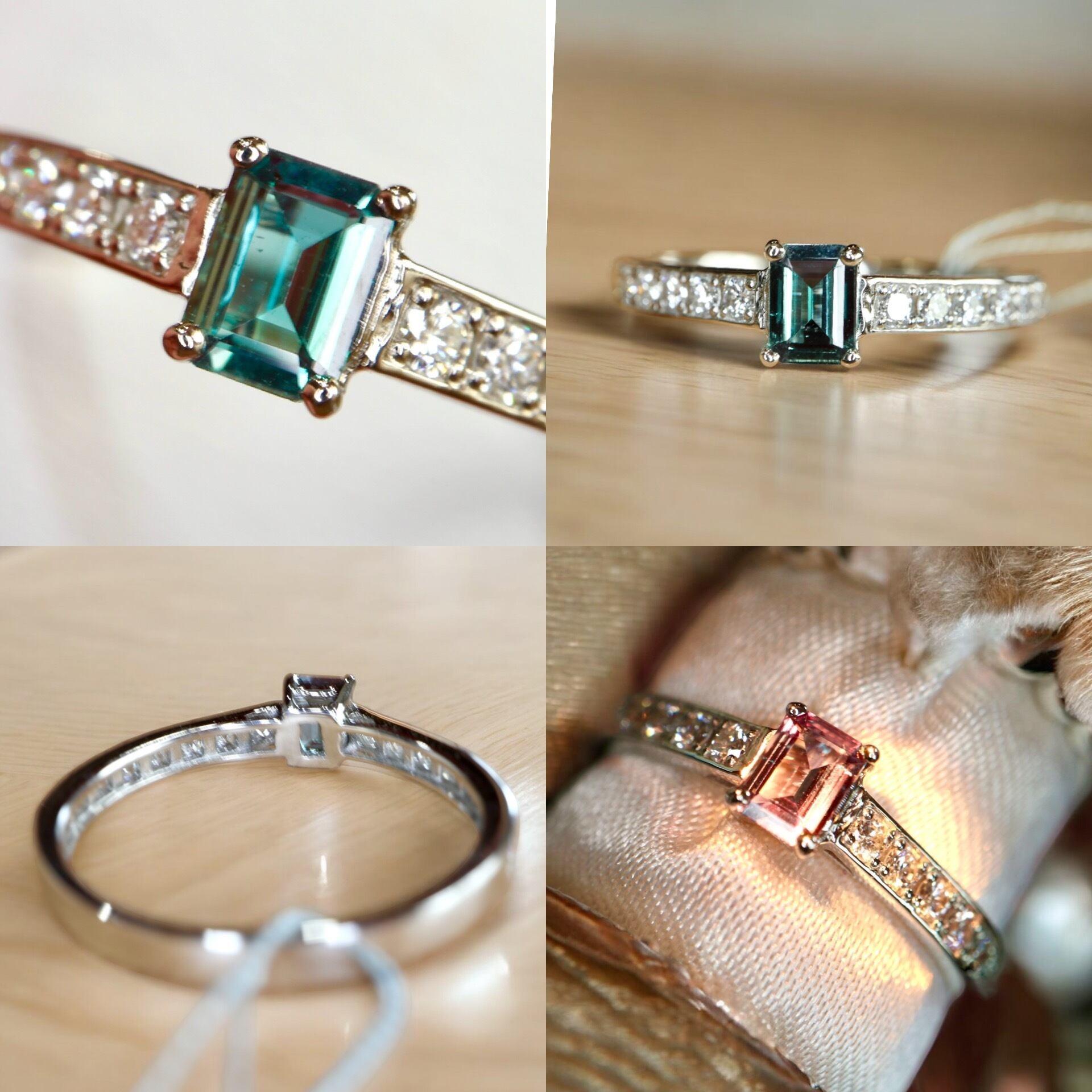 高品質アレキサンドライトスクエアダイヤモンドリング