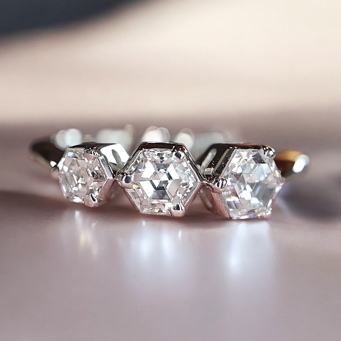 大粒の8角形のダイヤモンドが3石