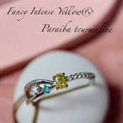 ファンシーインテンスイエロー&パライバトルマリンダイヤモンドリング