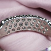 H&Cパヴェダイヤモンドの方はひっかかりを極力押さえ小さなお爪でセッティングしているのでお爪が目立たず隙間なくダイヤモンド敷き詰められていますのでリング全面から美しいダイヤモンドの輝きを感じる事ができる非常に美しいリングに仕上がっています。