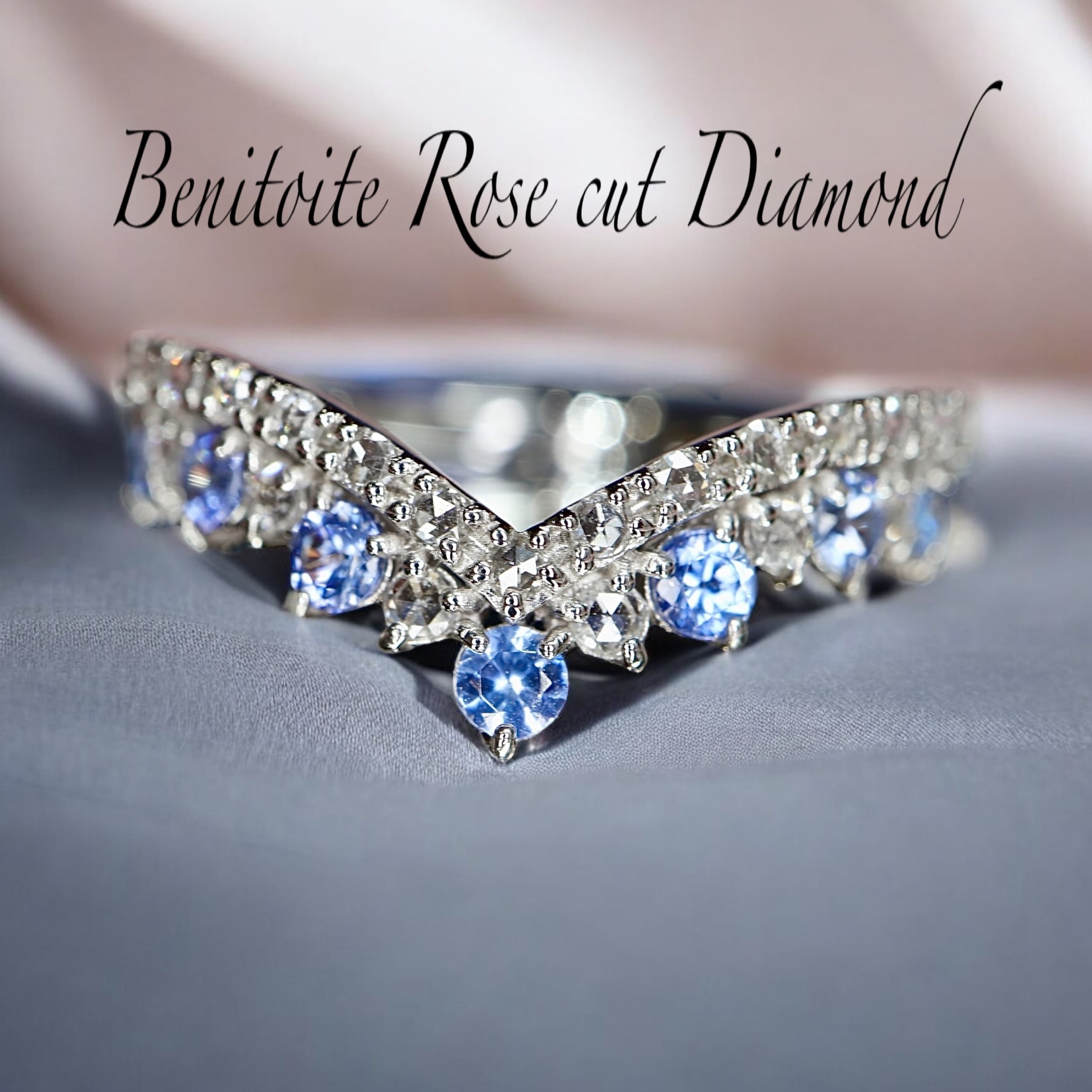 ベニトアイトローズカットダイヤモンドVring pt950 0.381ctD0.18ct