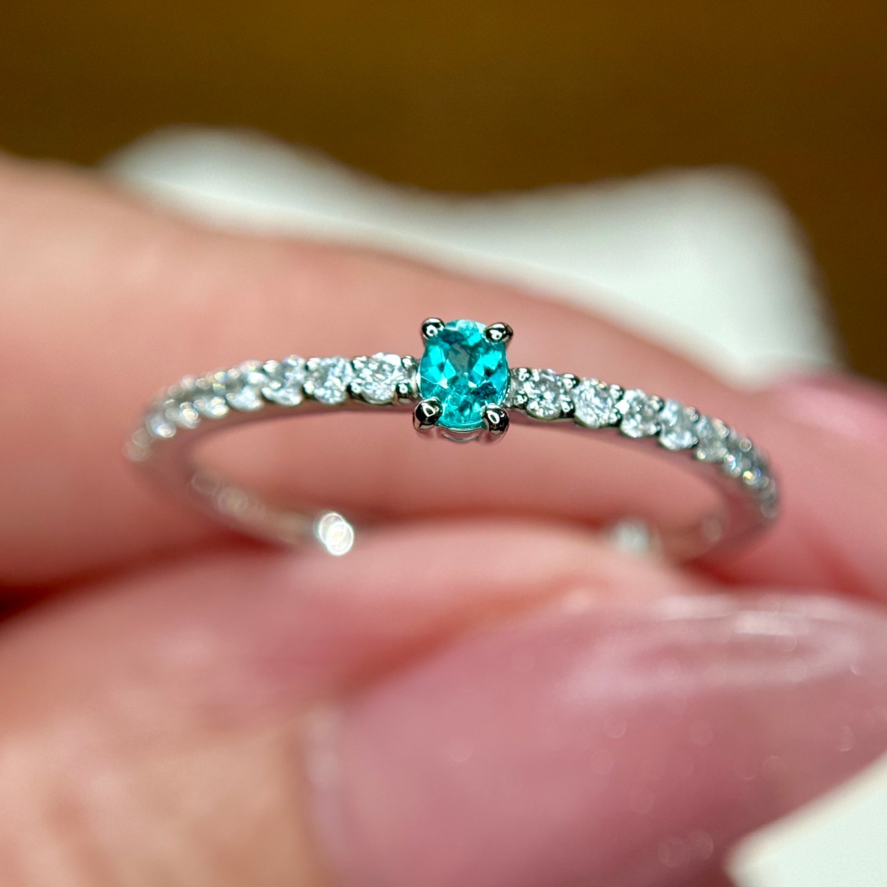 ブラジル産パライバトルマリンダイヤモンドリングpt9500.08ctD0.19ct