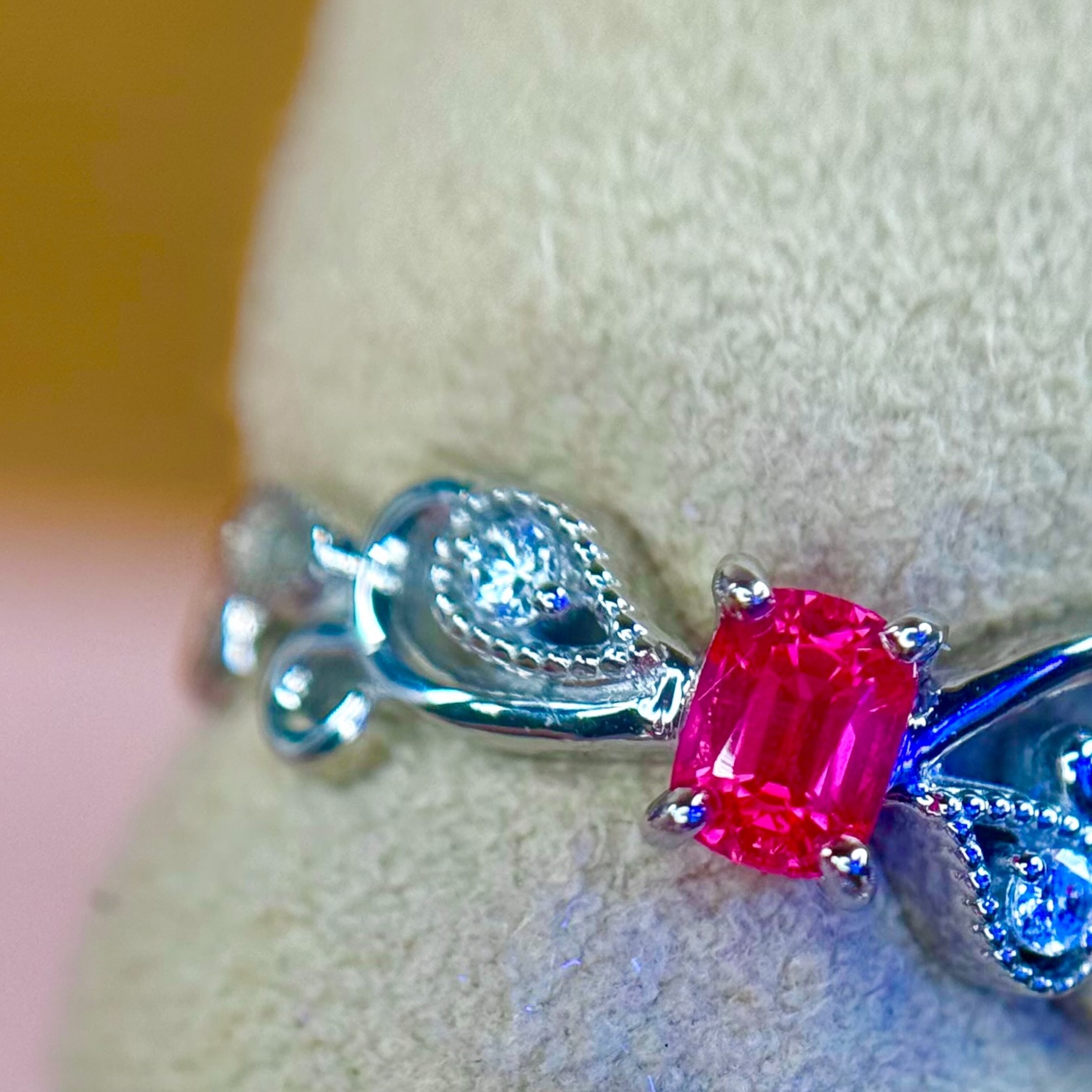 ホットピンクスピネルダイヤモンドリングpt9500.287ctD0.05ct