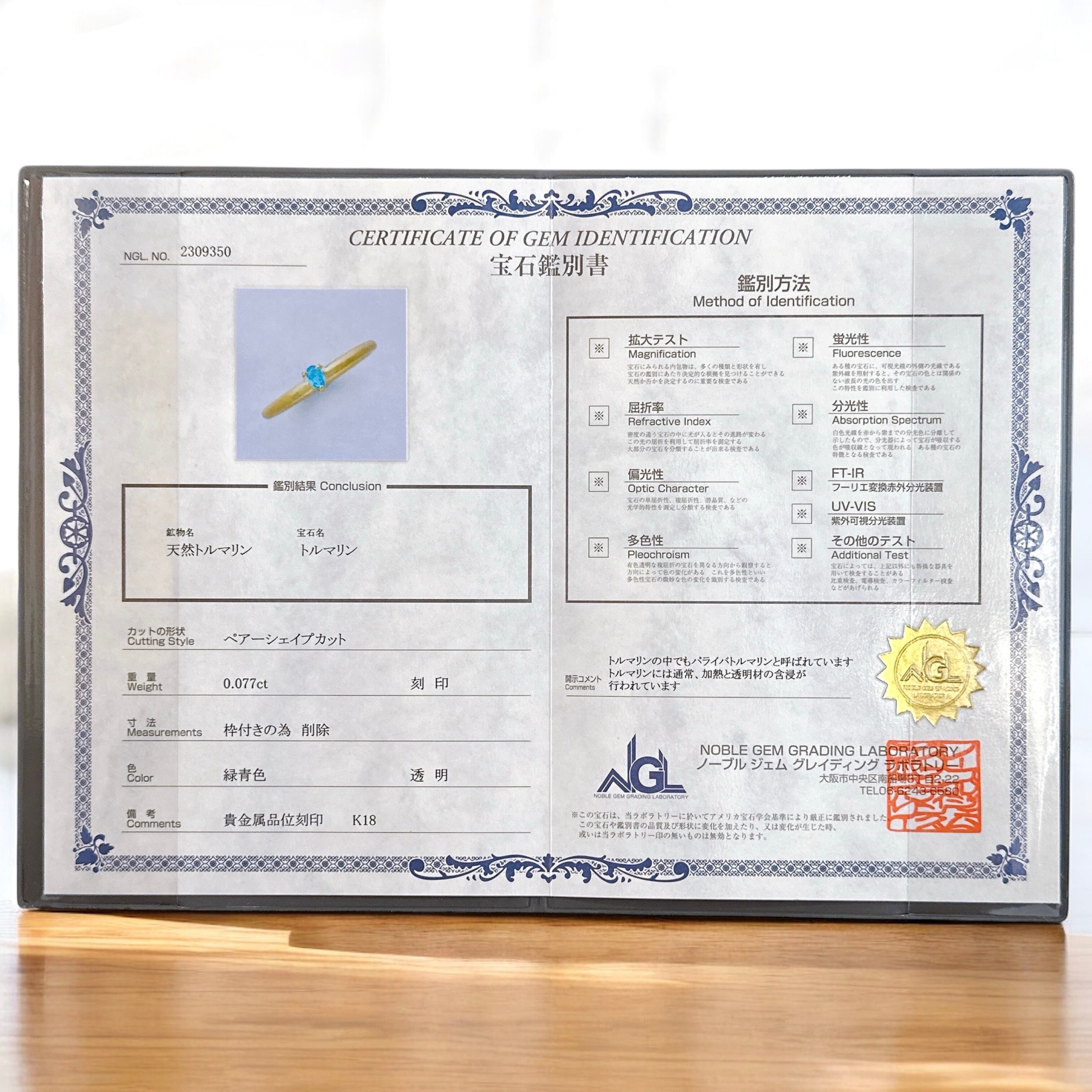 ブラジル産パライバトルマリンリングK18YGマット加工