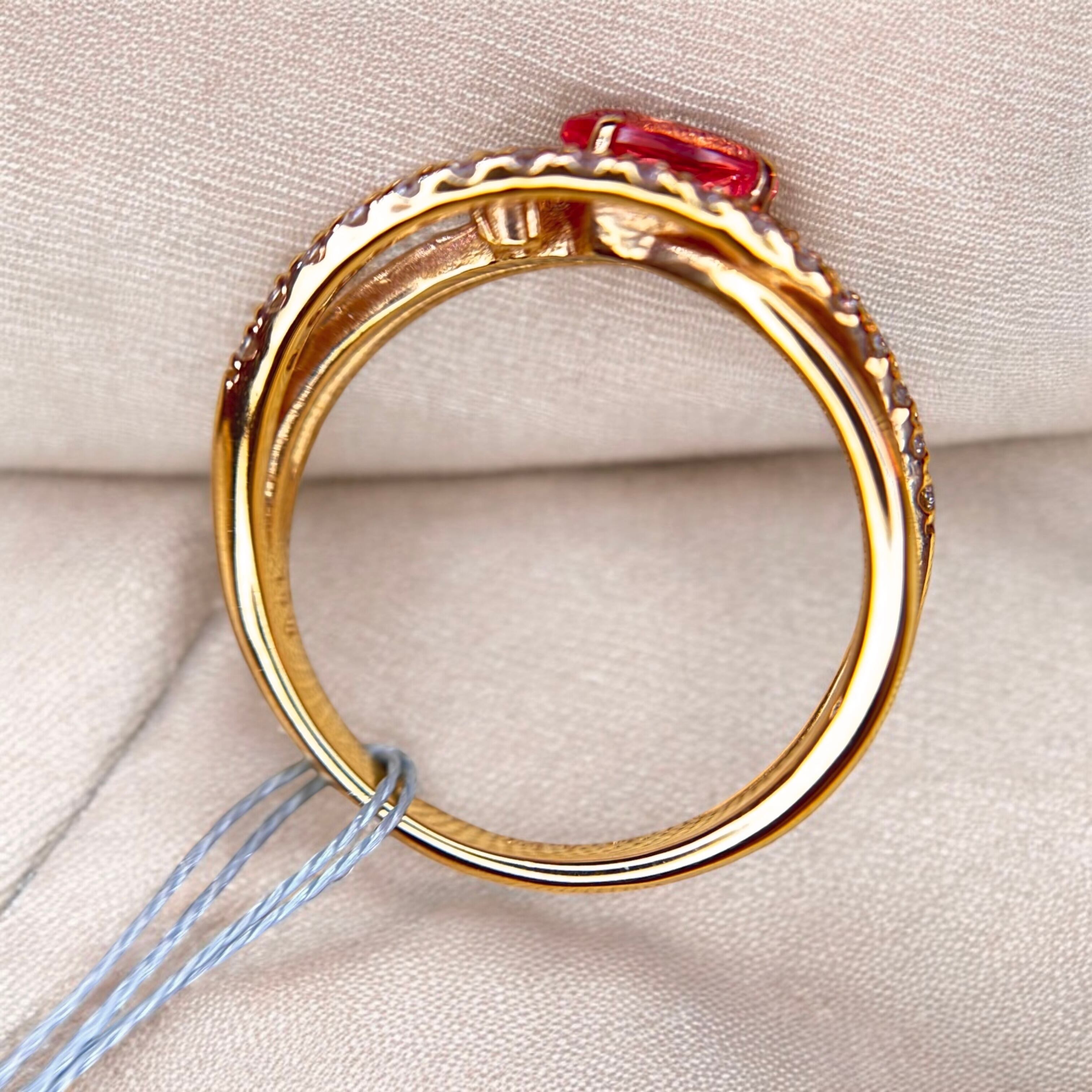 K18PGロードクロサイトダイヤモンドデザインリング0.57ctD0.21ct