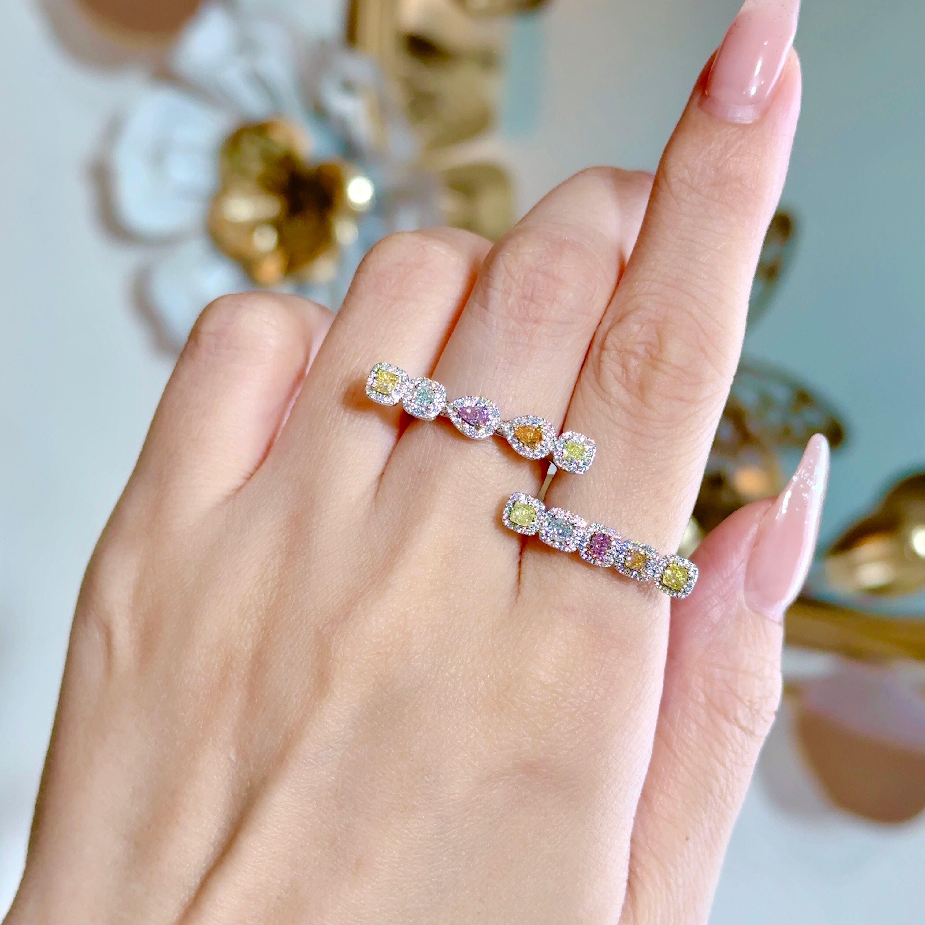 Colored Diamond BarDesignRing pt950/K18YG/PG 0.491ctD0.25ct
