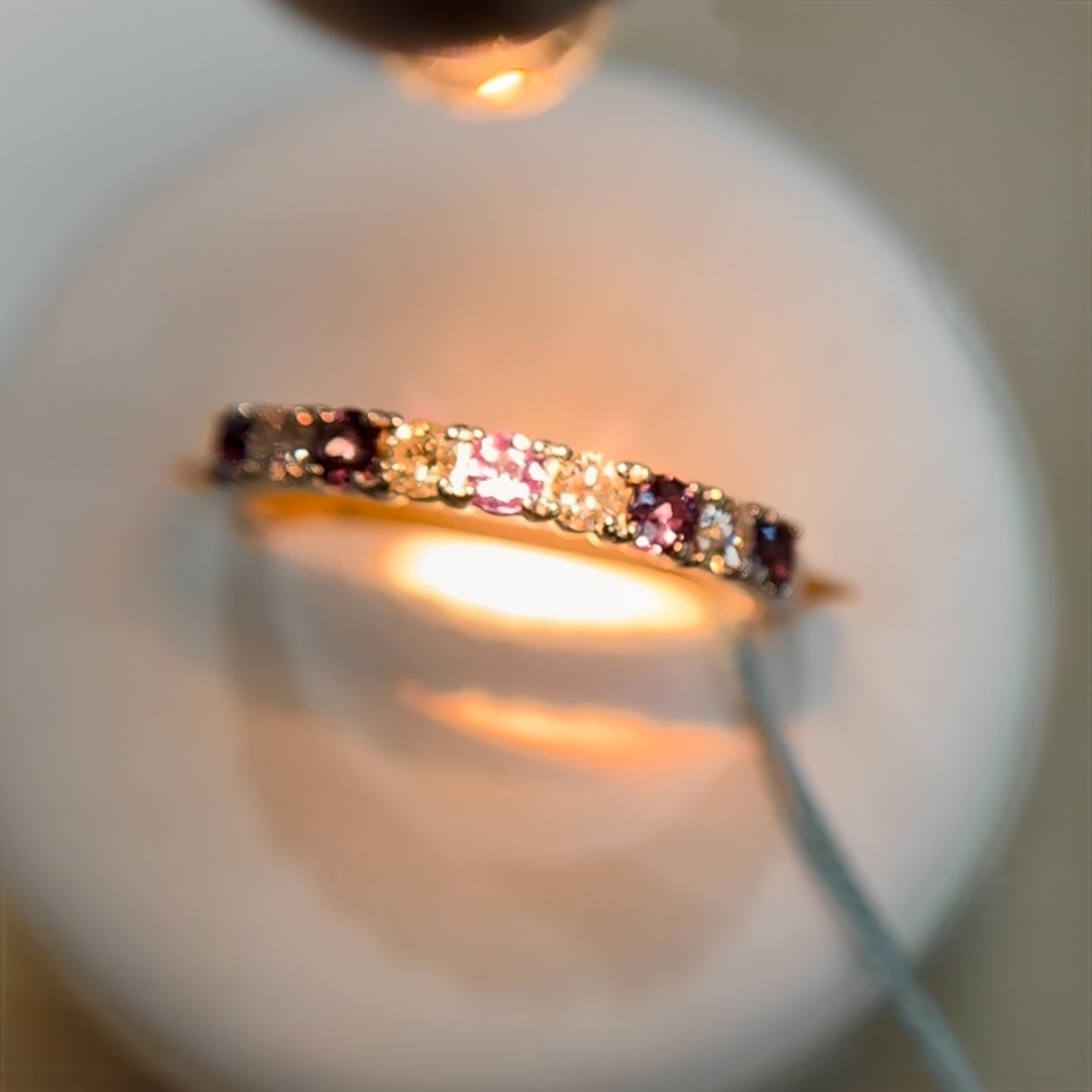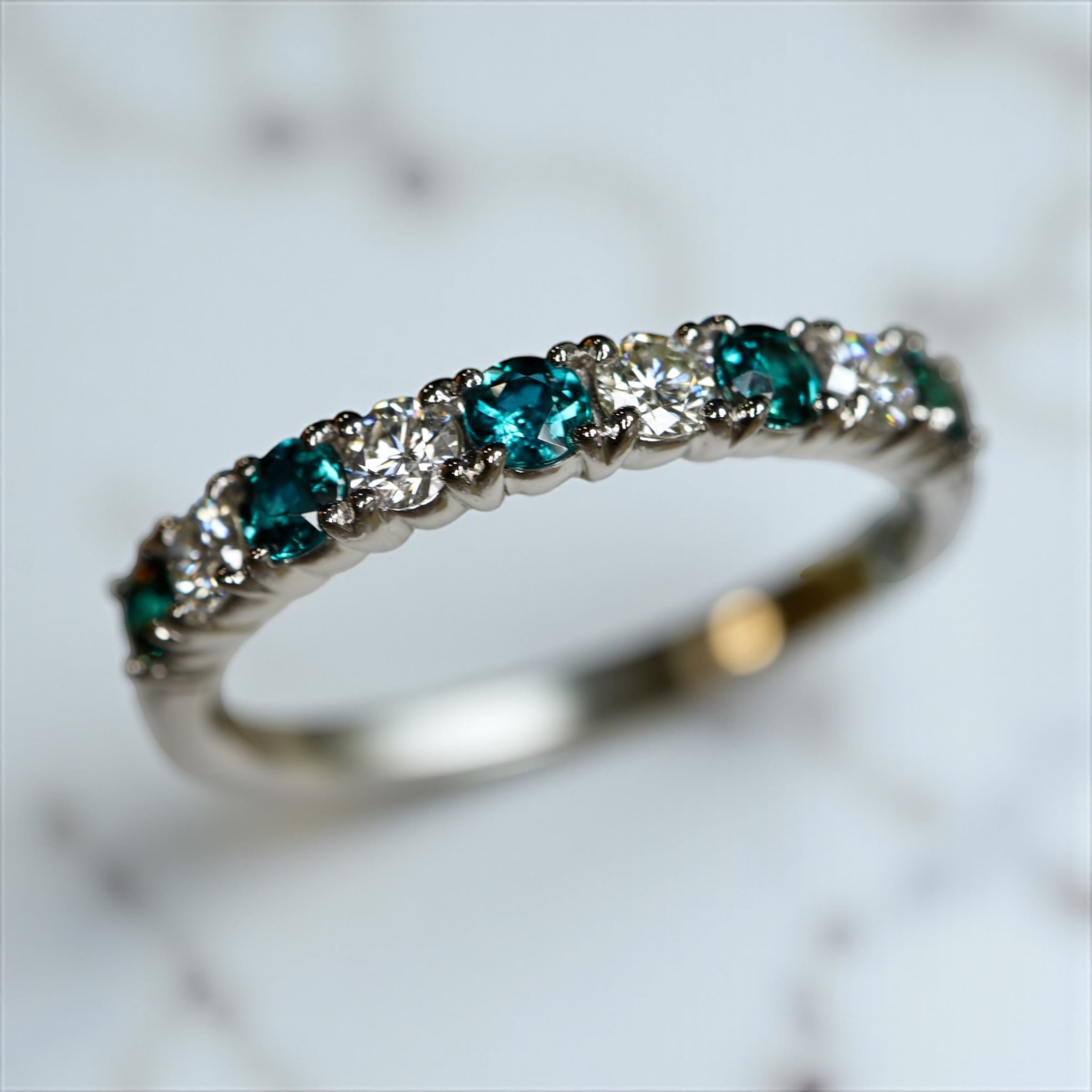 高品質のアレキサンドライト粒だけを厳選しダイヤモンドと交互になったハーフエタニティリング。
