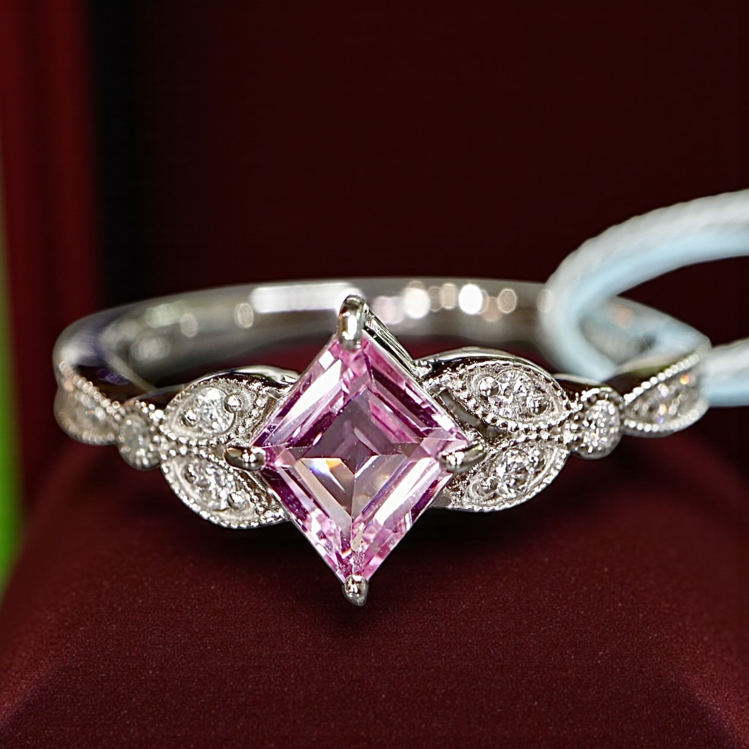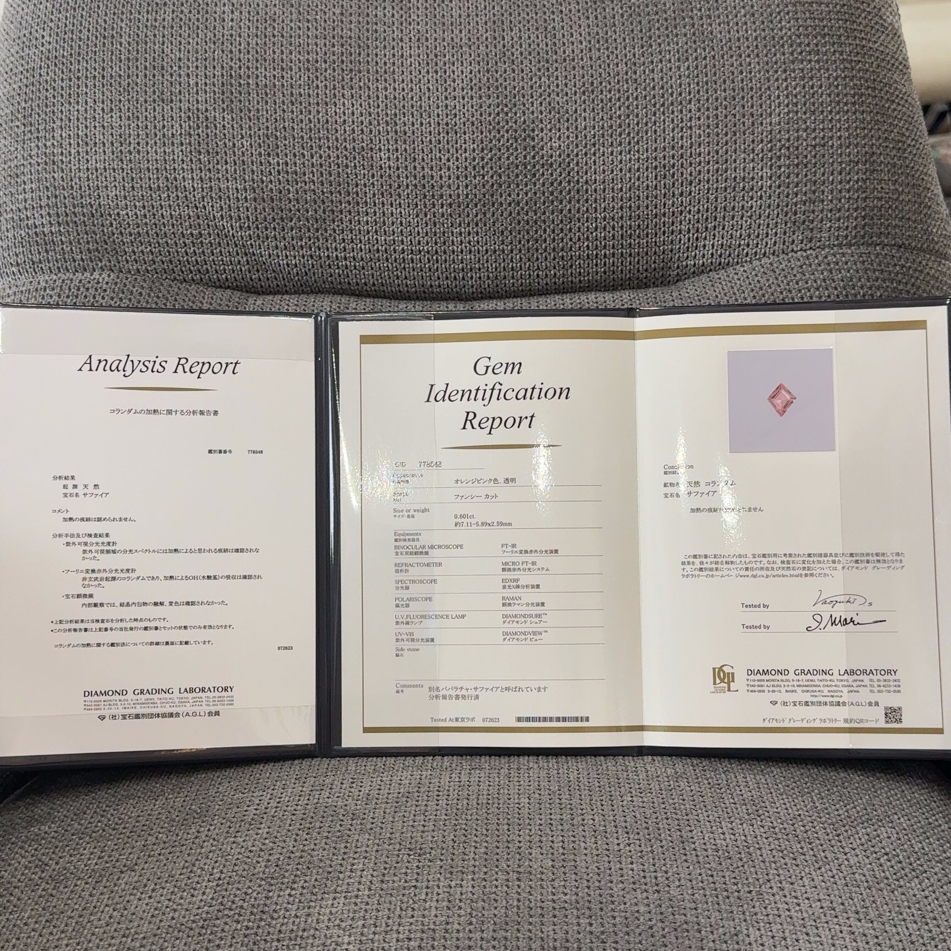 このスクエアのカットが光沢を最大に生かしつつ明るく強く輝かせる効果がありますのでパパラチアサファイアのような美しい色合いと輝きを最大限に引き出すのに理想的なカットといえます。