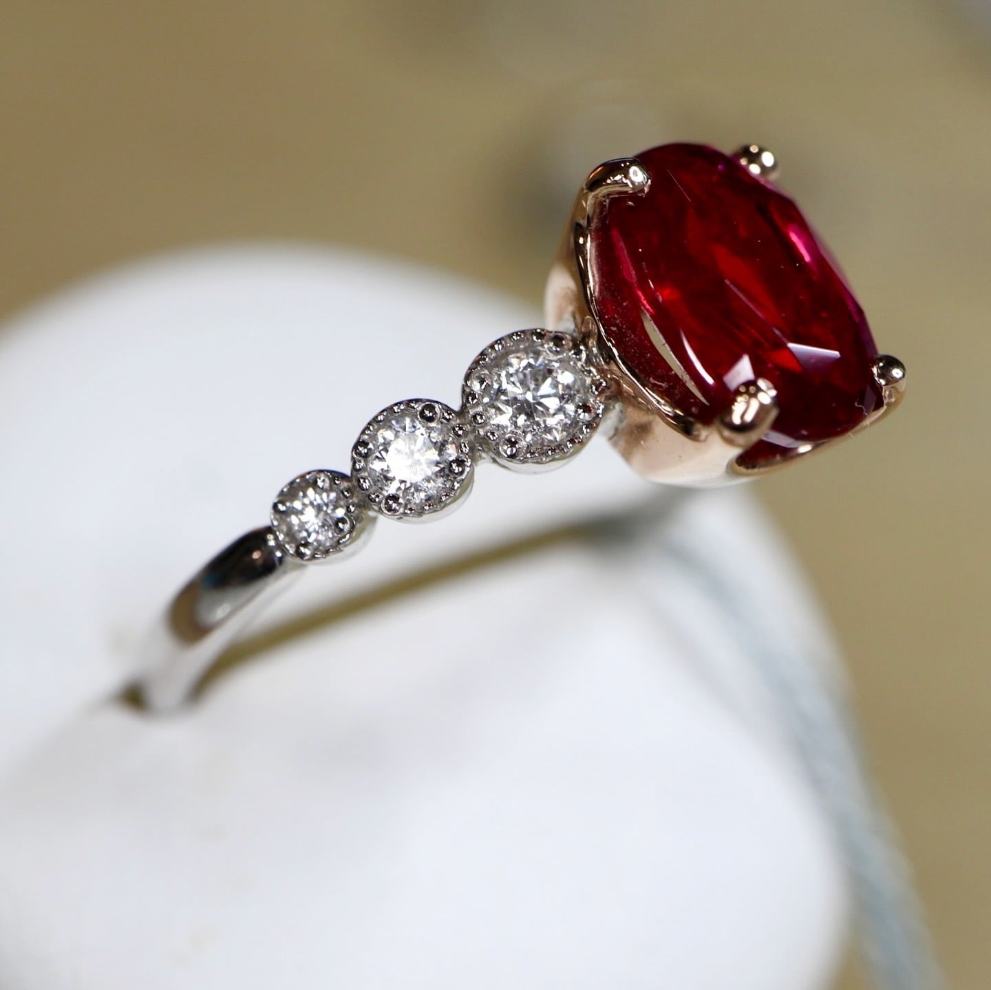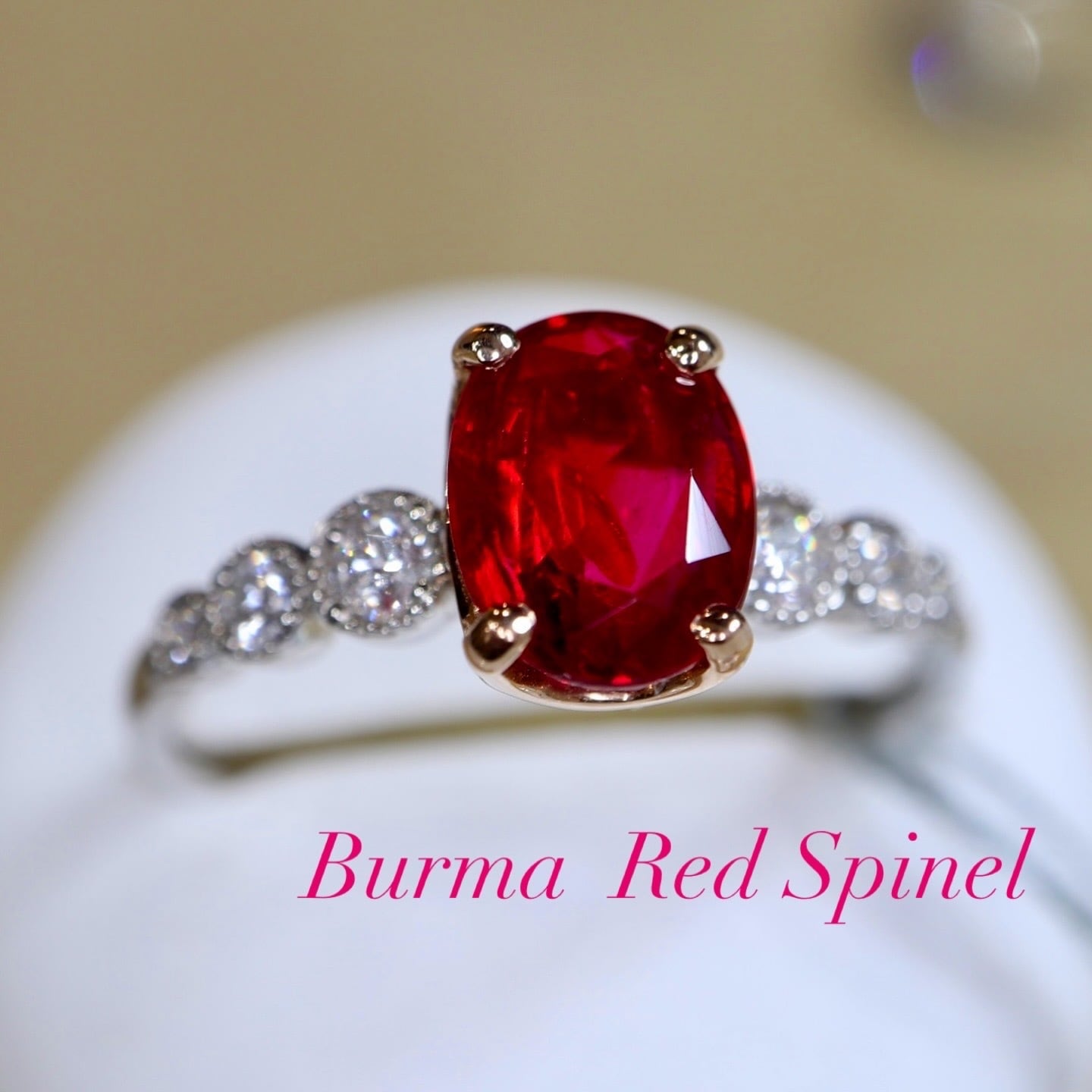中でもビルマ産のスピネルは世界的にも希少で、特にこの鮮やかなレッドは愛好家の間で非常に高く評価されています。