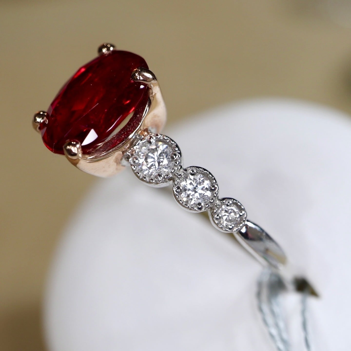 高品質ビルマ産レッドスピネルダイヤモンドリングpt950/K18PG レッドスピネル1.21ct D0.15ct