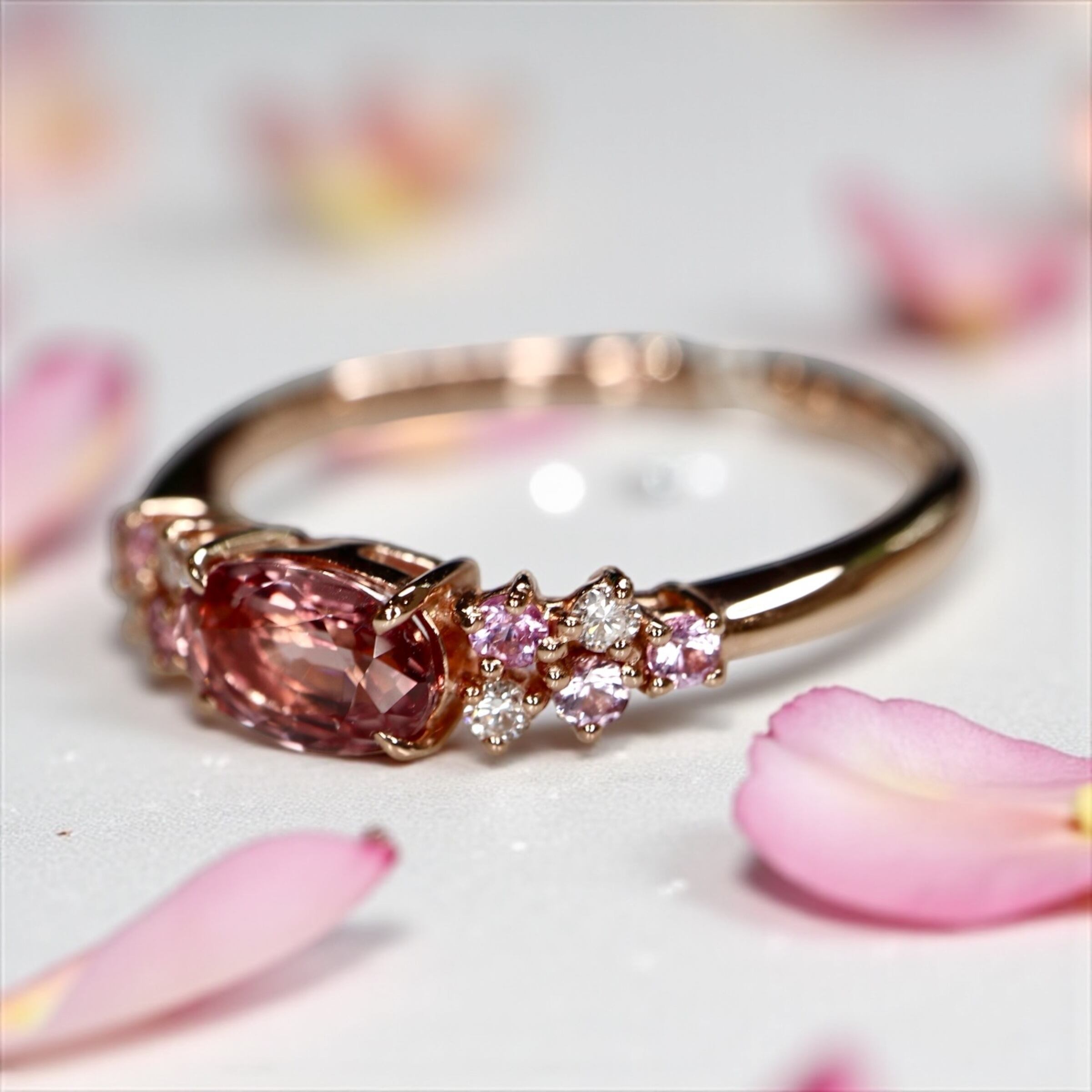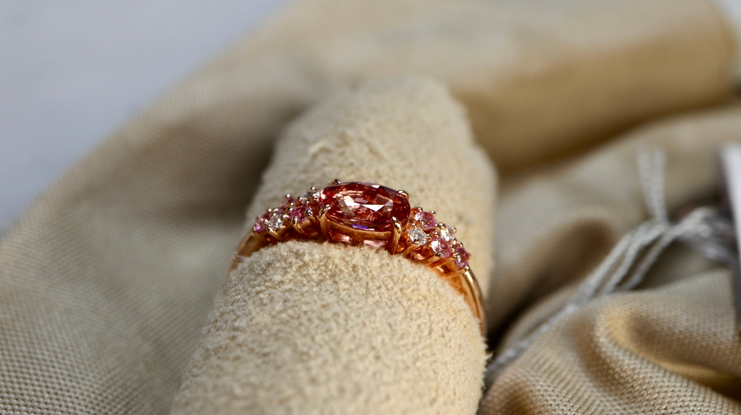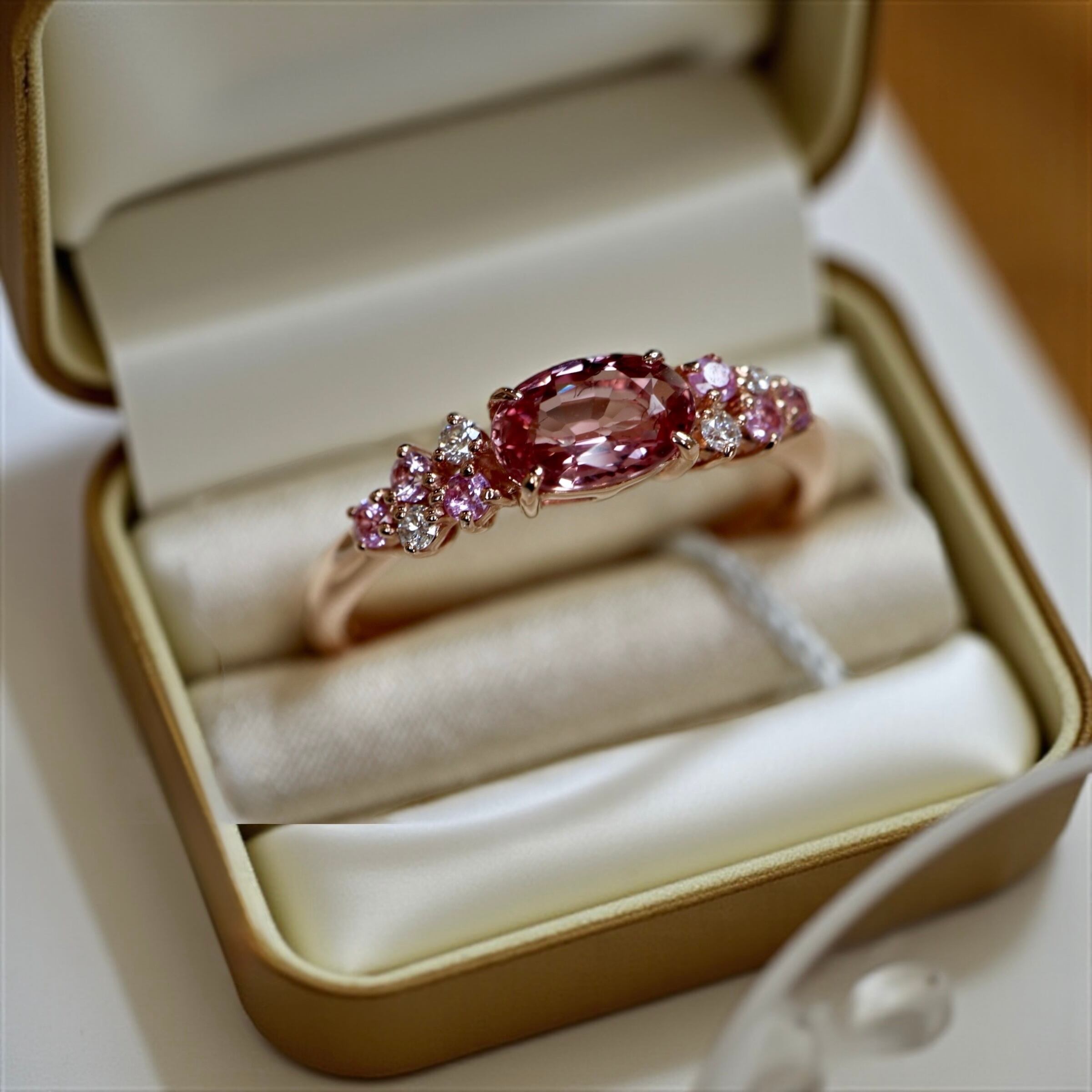 K18PGパパラチアサファイア&パパラチアサファイアダイヤモンドリング0.598ct0.10ctD0.04ct