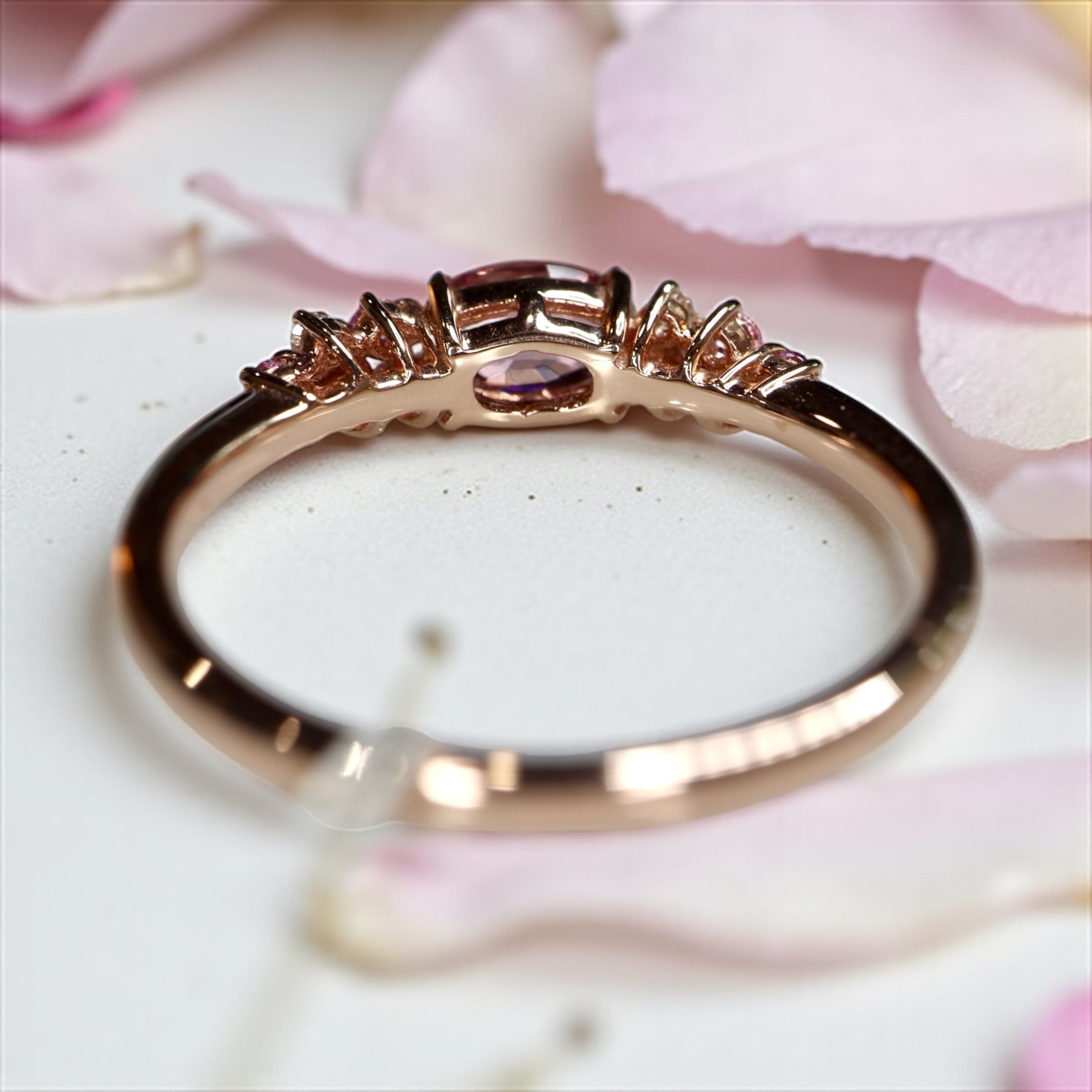 K18PGなのでパパラチアサファイアがより濃くとろんとした揺らぎも映りとっても素敵なリングです✨
