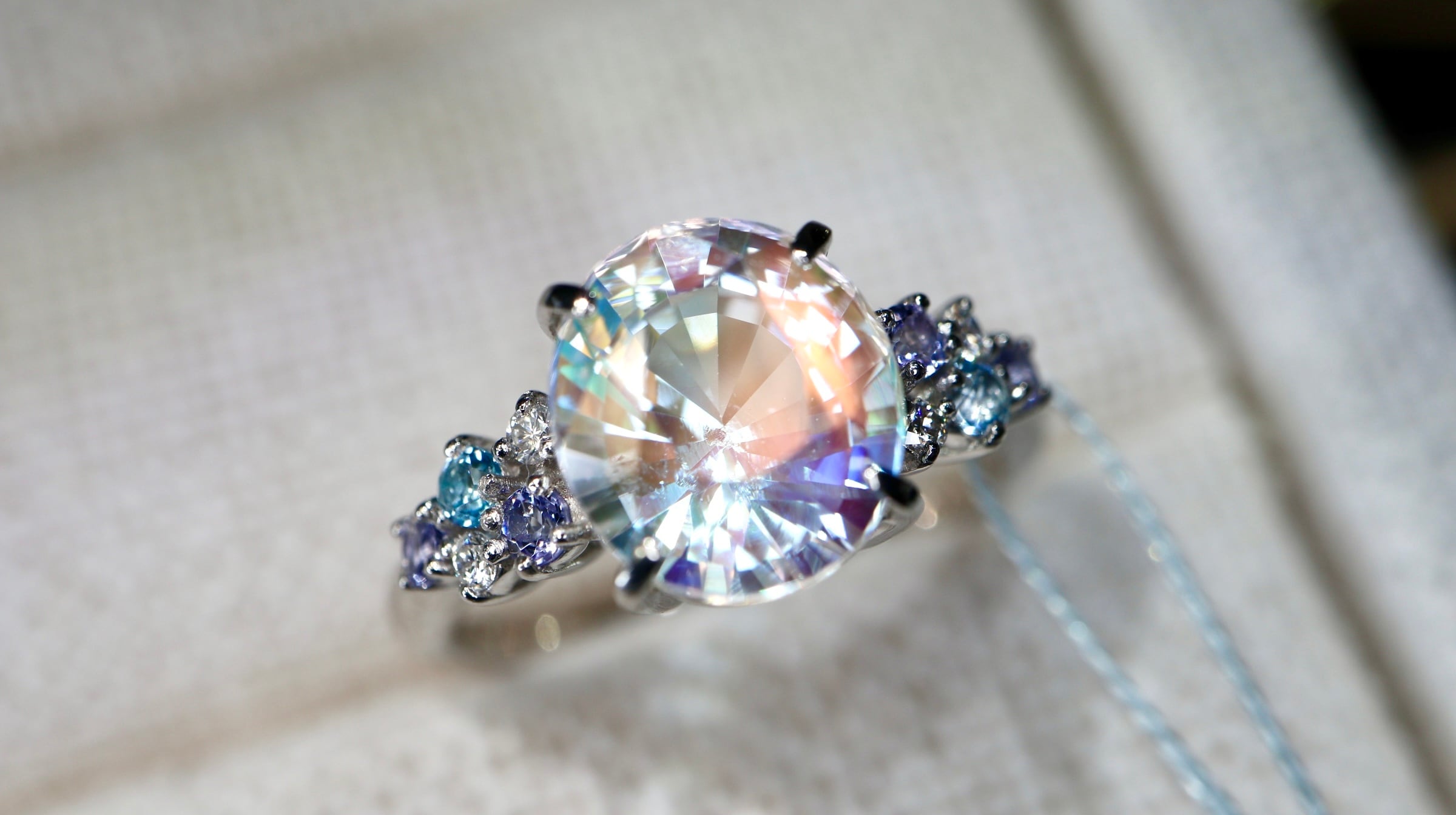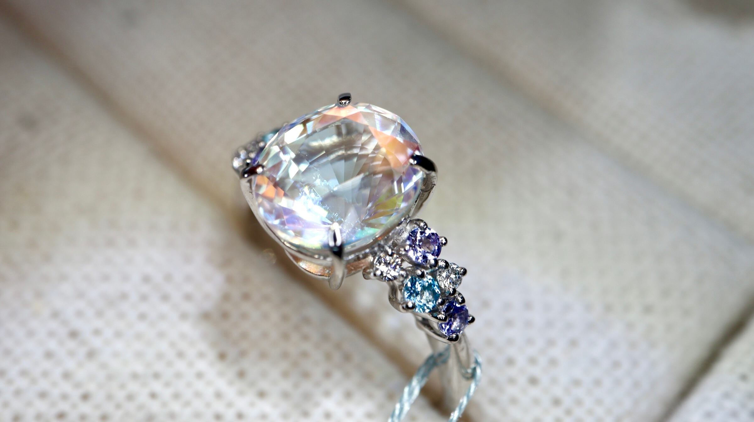 ブラックオパール/レインボームーンストーンラブラドライトリング2点✨