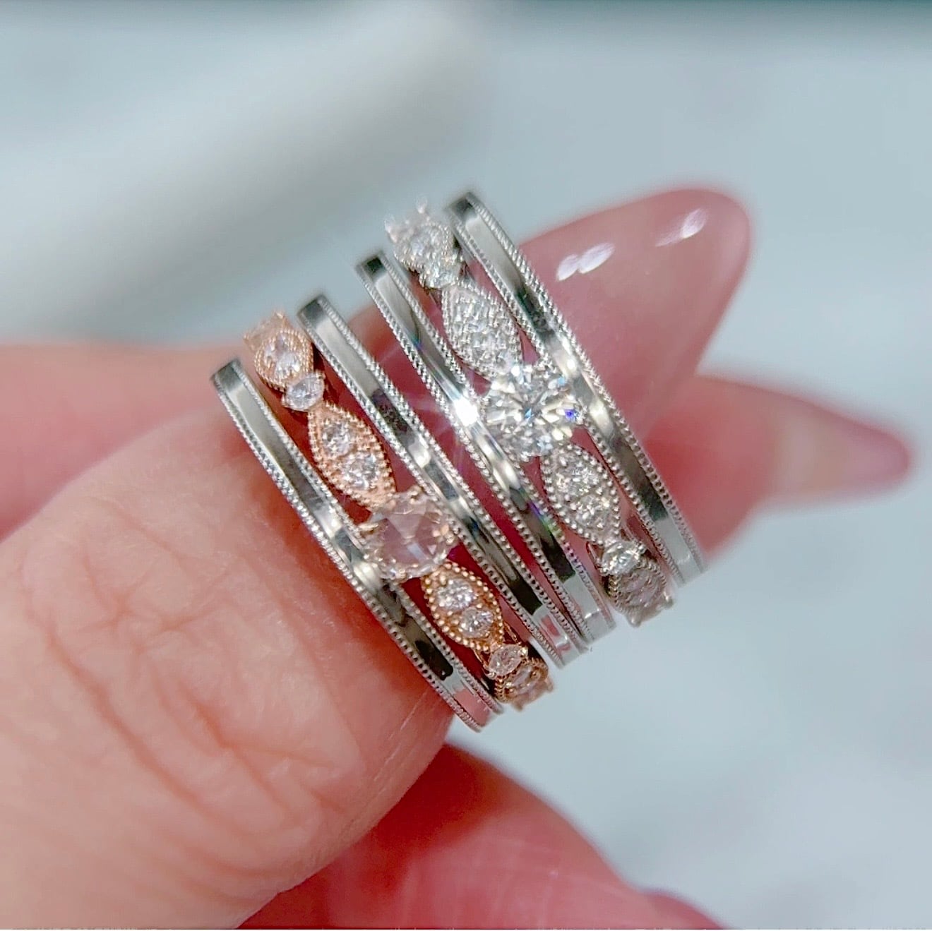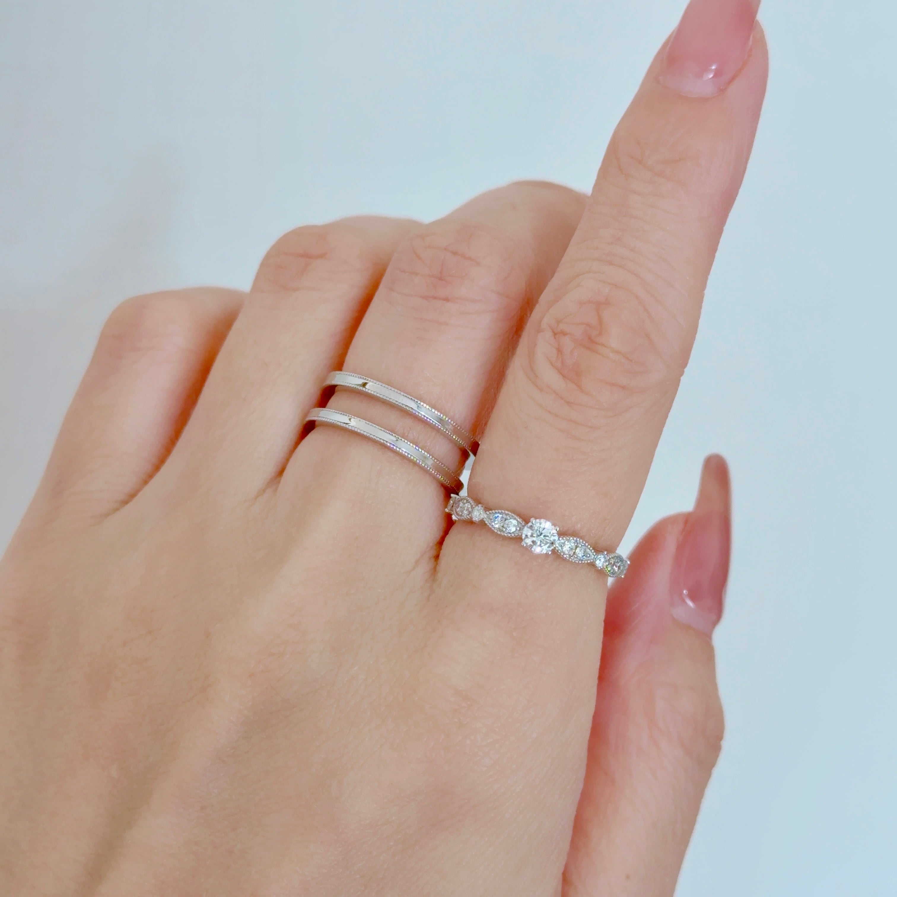 今回は前回販売させていただいたK18PGとプラチナのセットリングにプラチナオンリーが仲間入り。