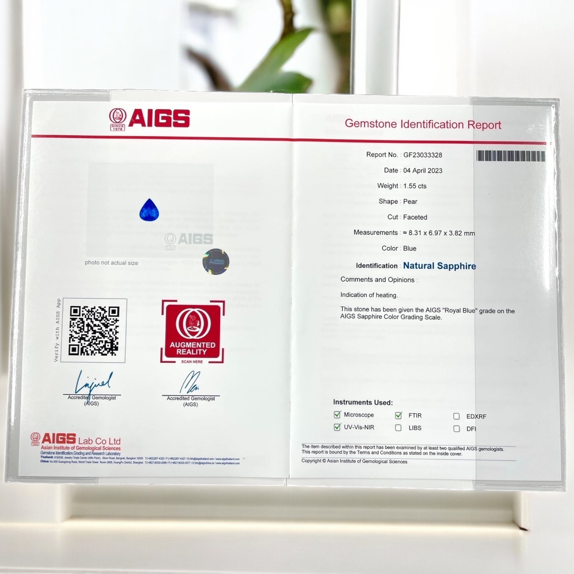 AIGS鑑別書付きの「Royal Blue」グレード。