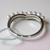 アコヤベビーパールを贅沢に並べた緩Vシルエットのリングが新しくお目見えです。