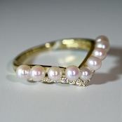 アコヤベビーパールを贅沢に並べた緩Vシルエットのリングが新しくお目見えです。