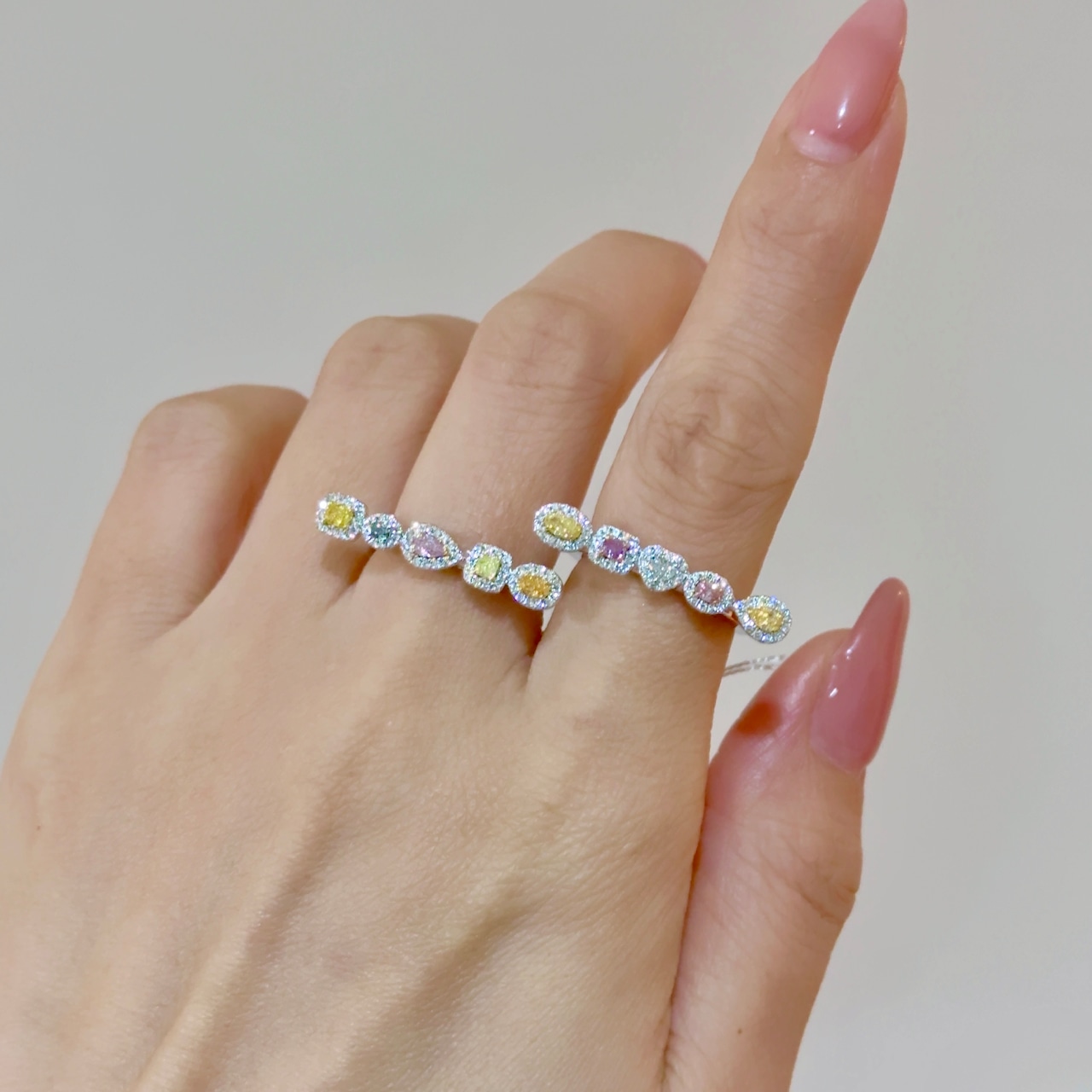 pt950/K18YG/K18PGファンシーカラーダイヤモンドリング0.349ctD0.20ct