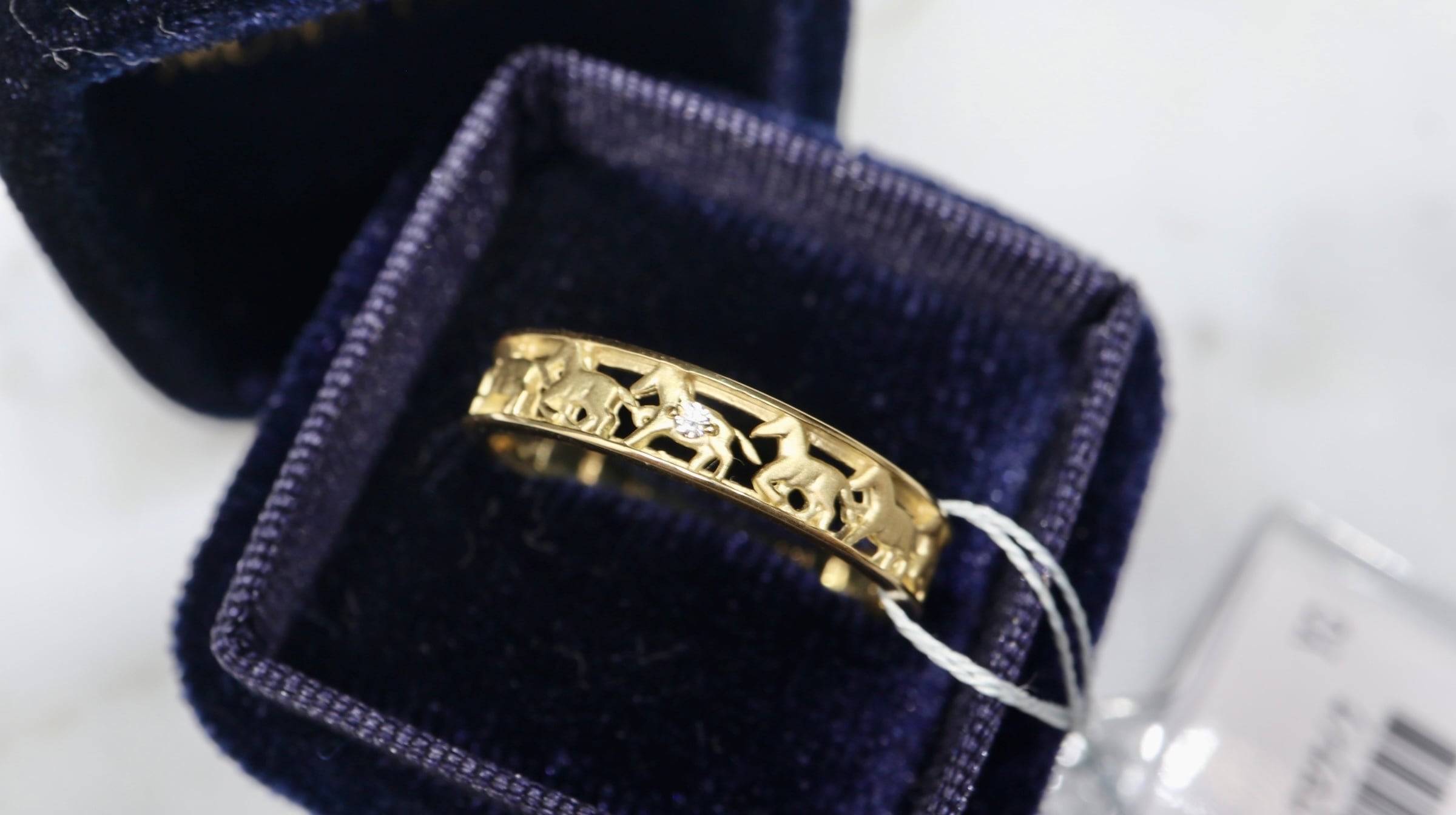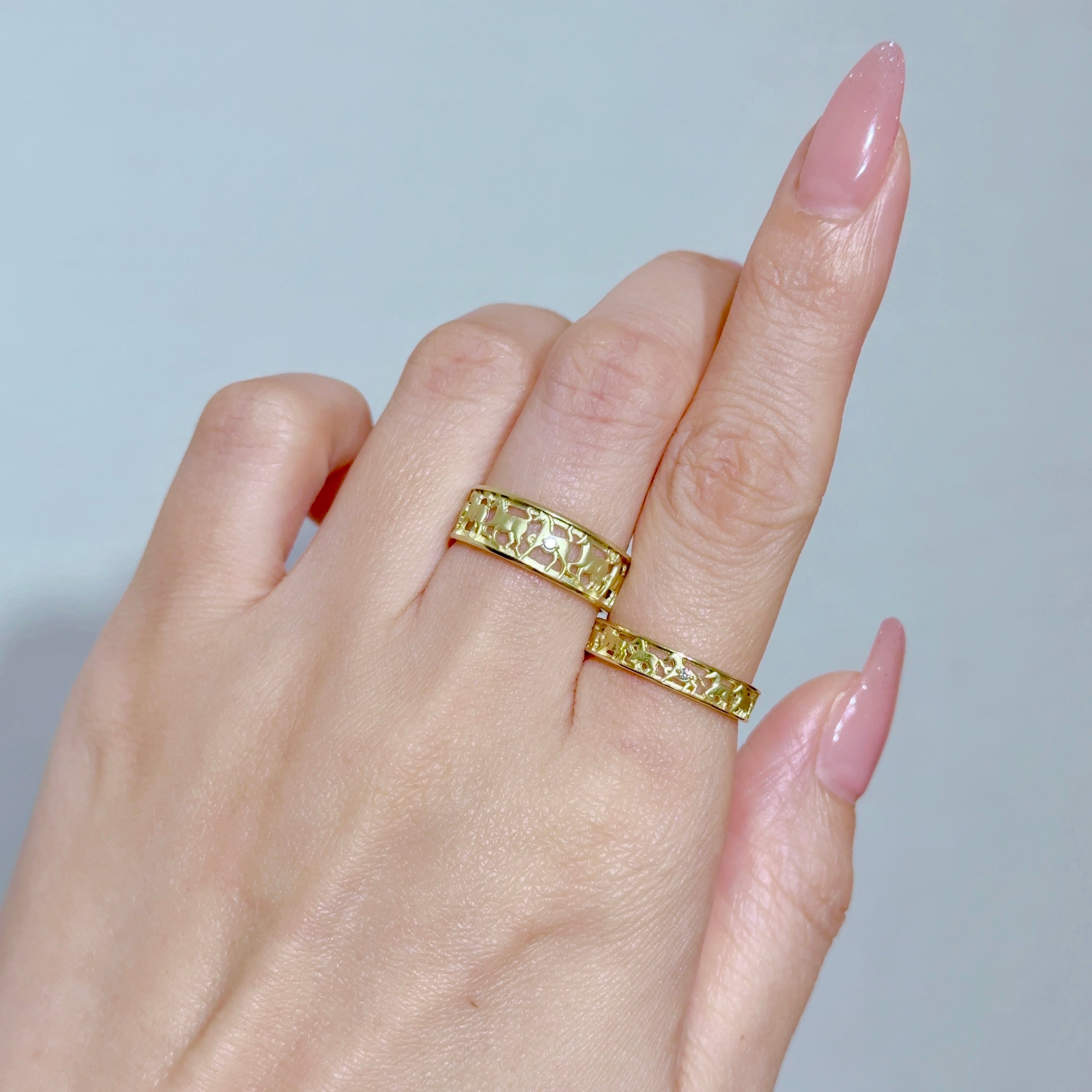 K18YG ホースデザイン透かしダイヤモンド1Pデザインリング2本