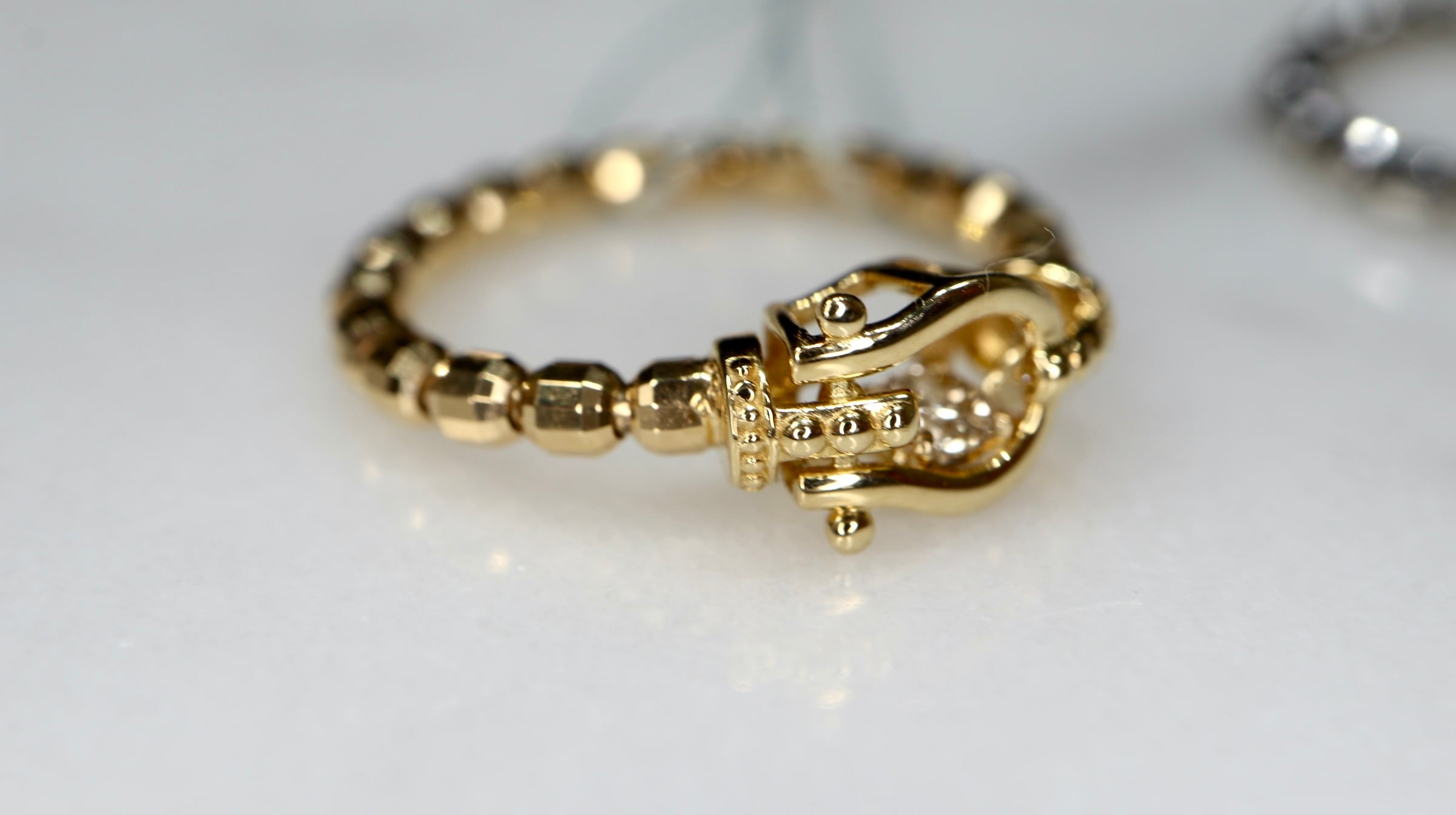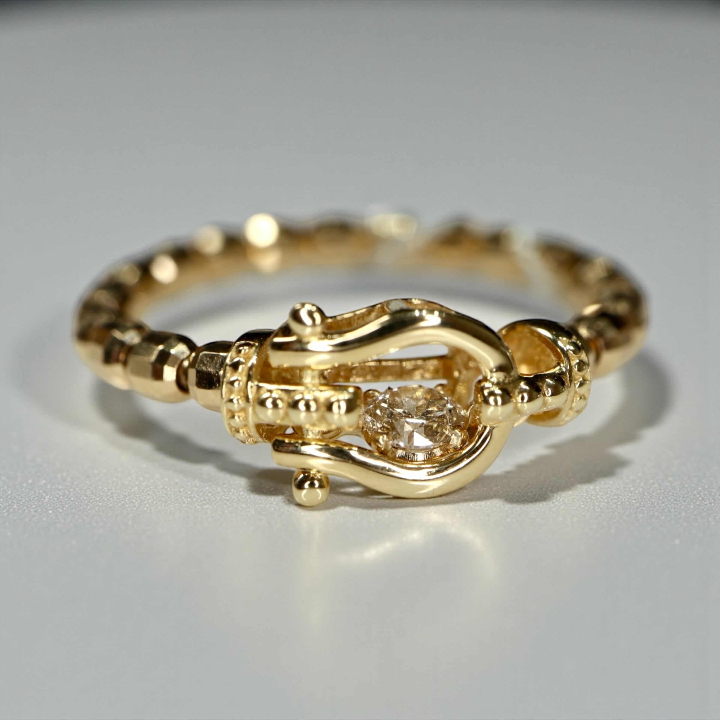 K18YG馬蹄スイングダイヤモンドフリーピンキーリングD0.05ct