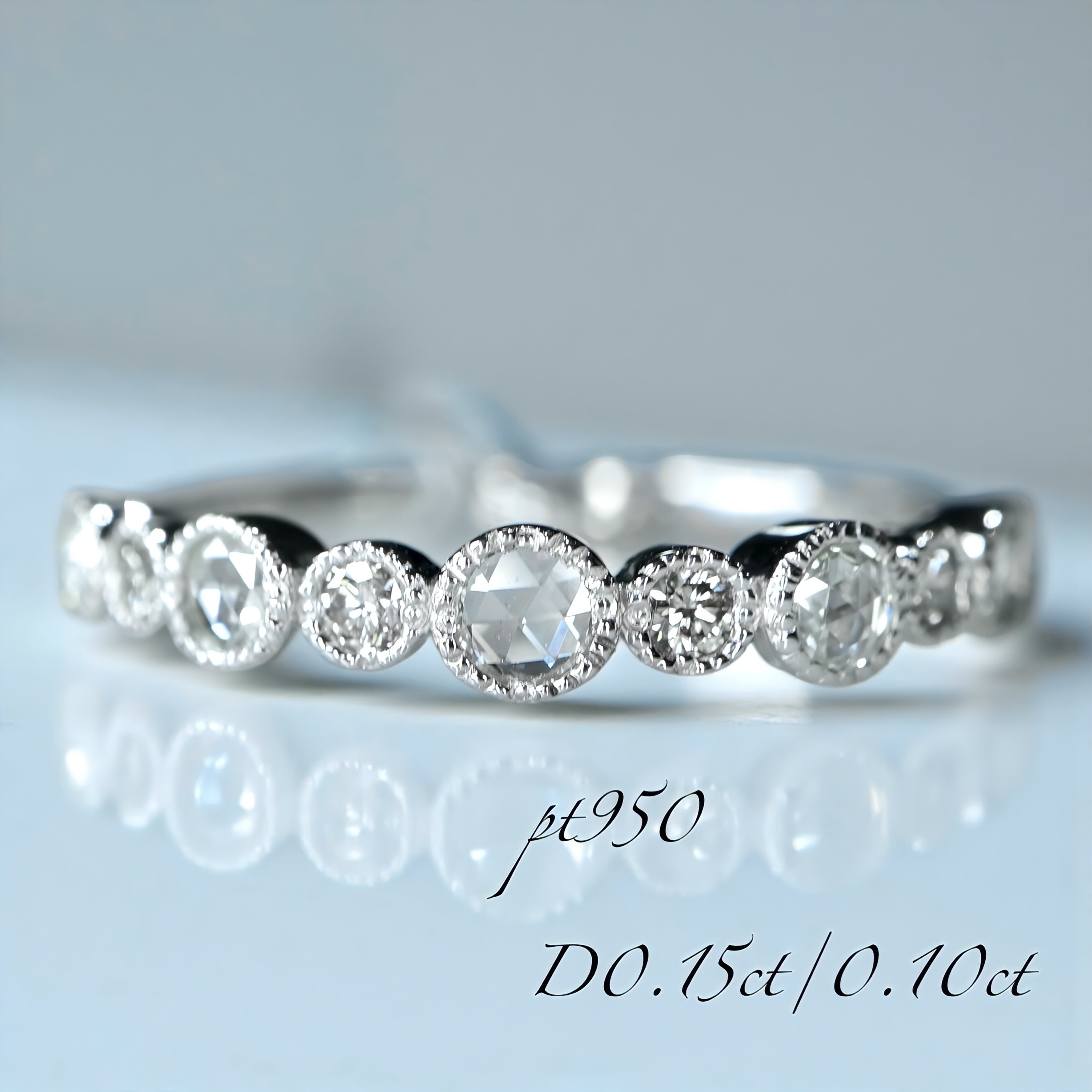 pt950ローズカットダイヤモンド&カットダイヤモンドハーフエタニティリングD0.15/0.10 11.5号