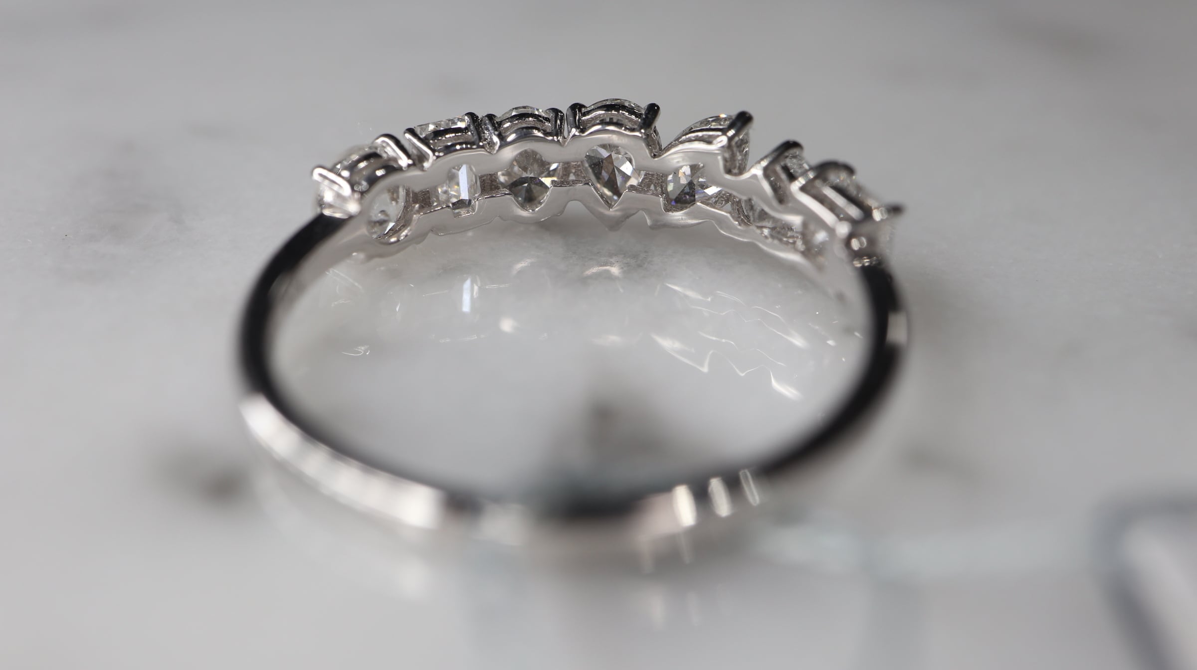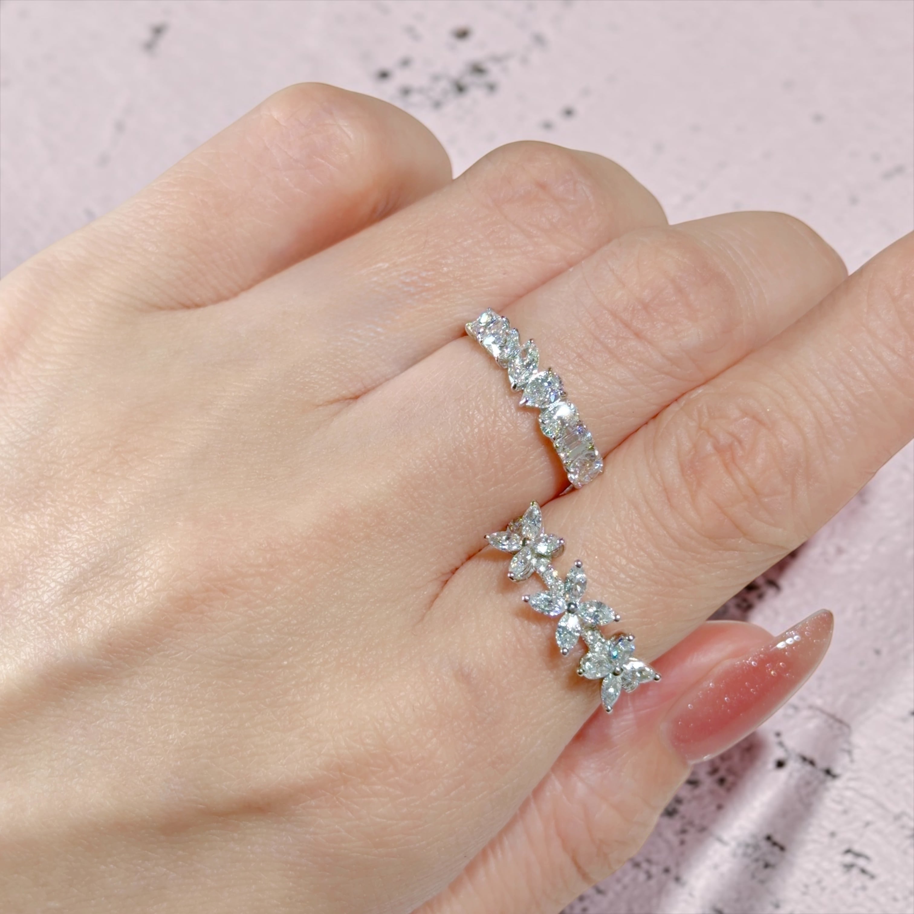 それぞれ違う形のダイヤモンドを個性の違う輝きが寄り添い連なります。