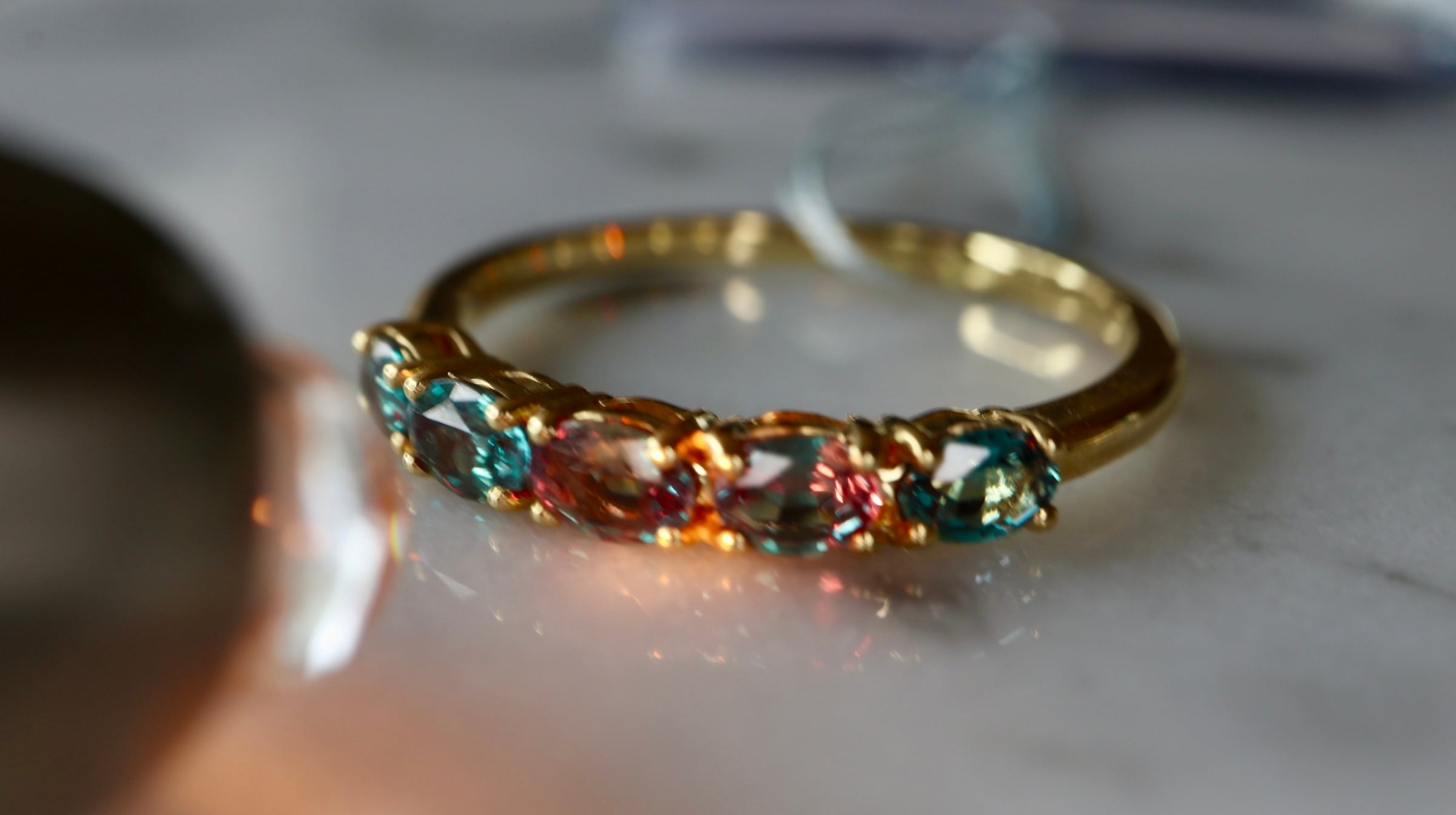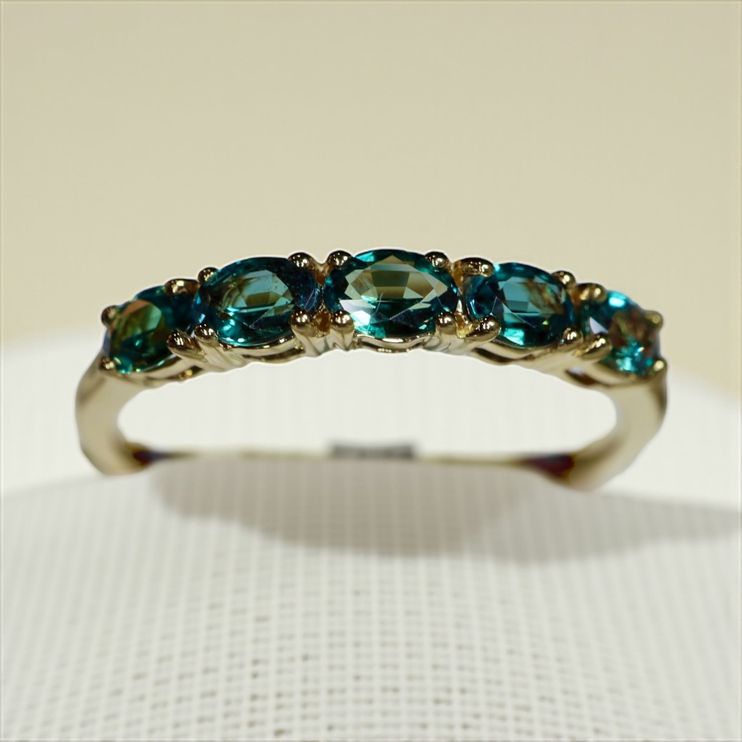 極上のオーバルカットアレキサンドライトハーフエタニティリング。