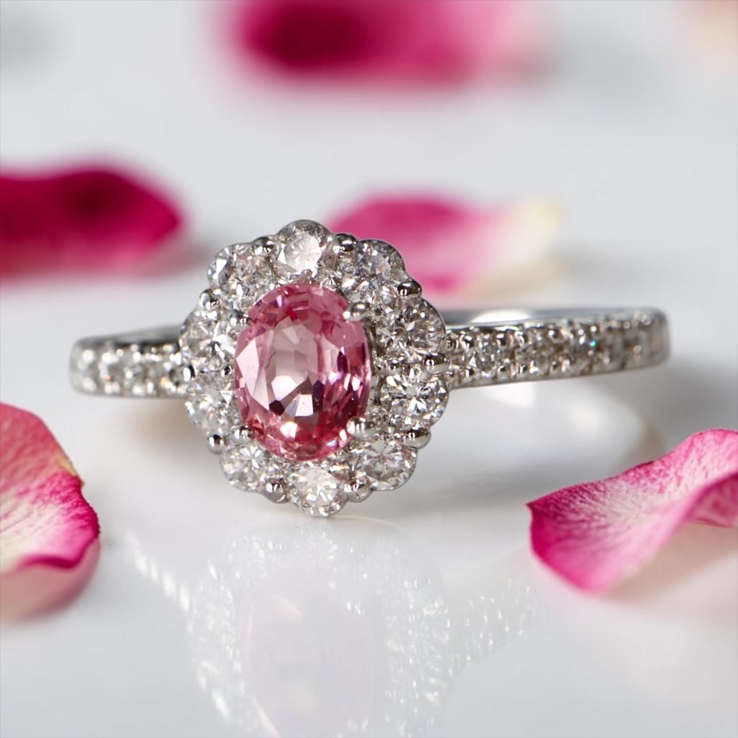 お色味はオレンジピンクでぎゅっと色が乗ったなんとも可憐なパパラチアサファイアです。