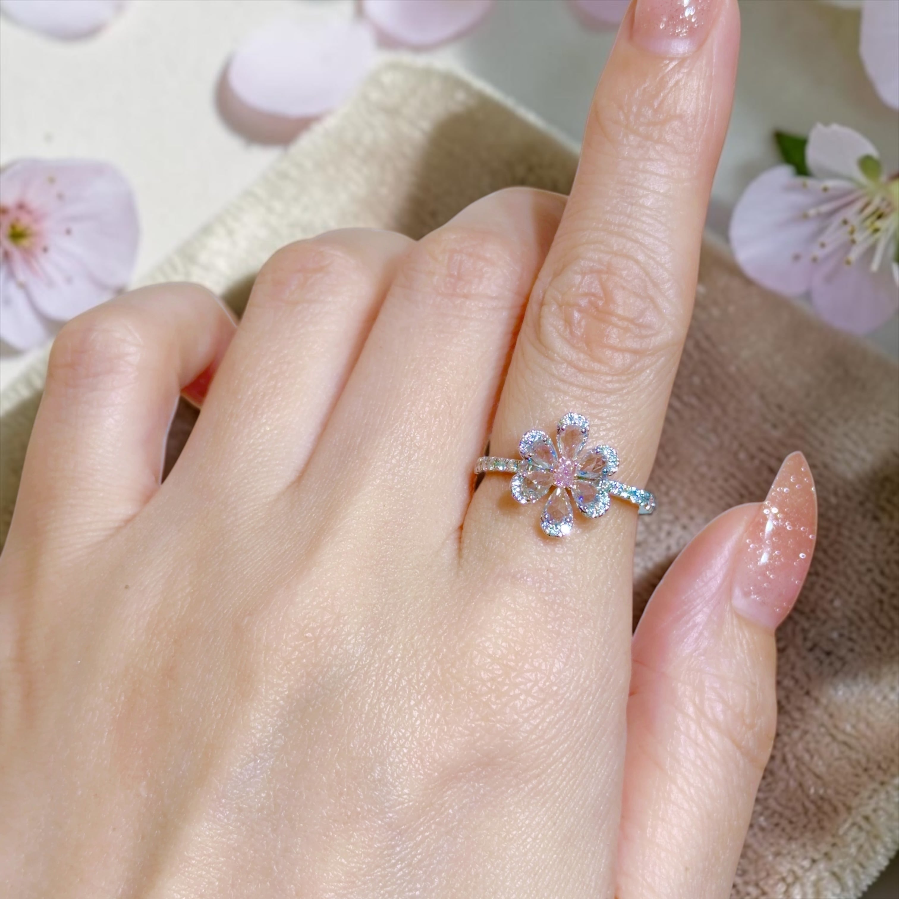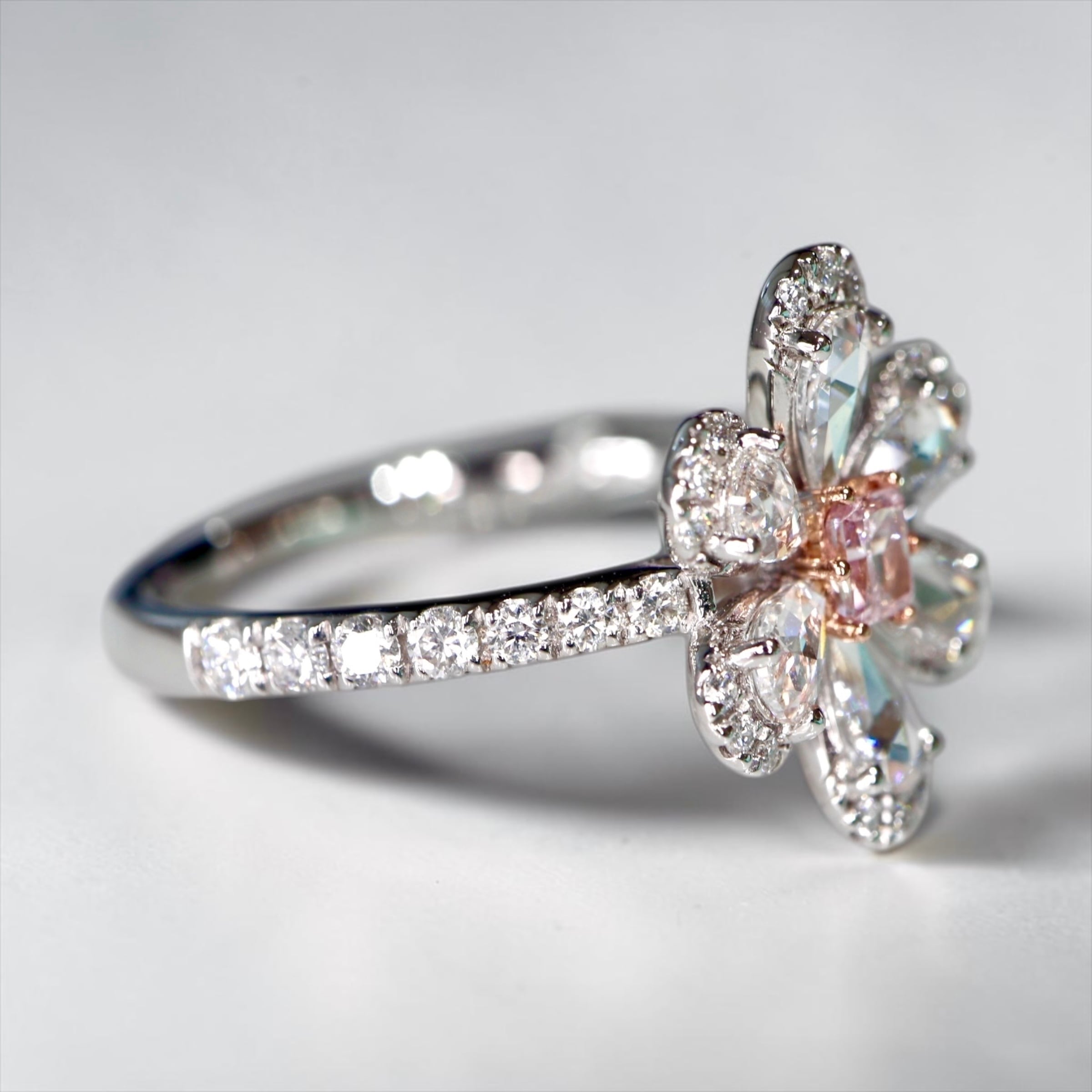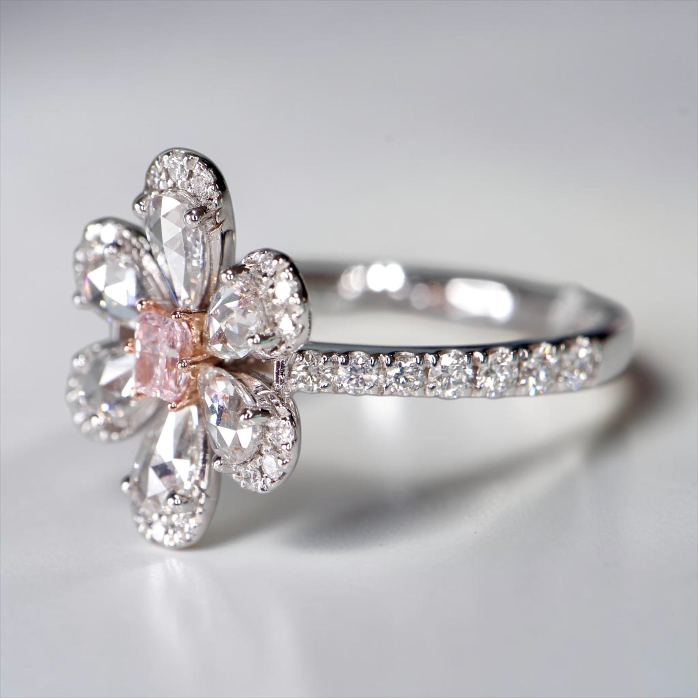 センターのファンシーピンクダイヤモンドは満開の1番美しい時の桜のよう。