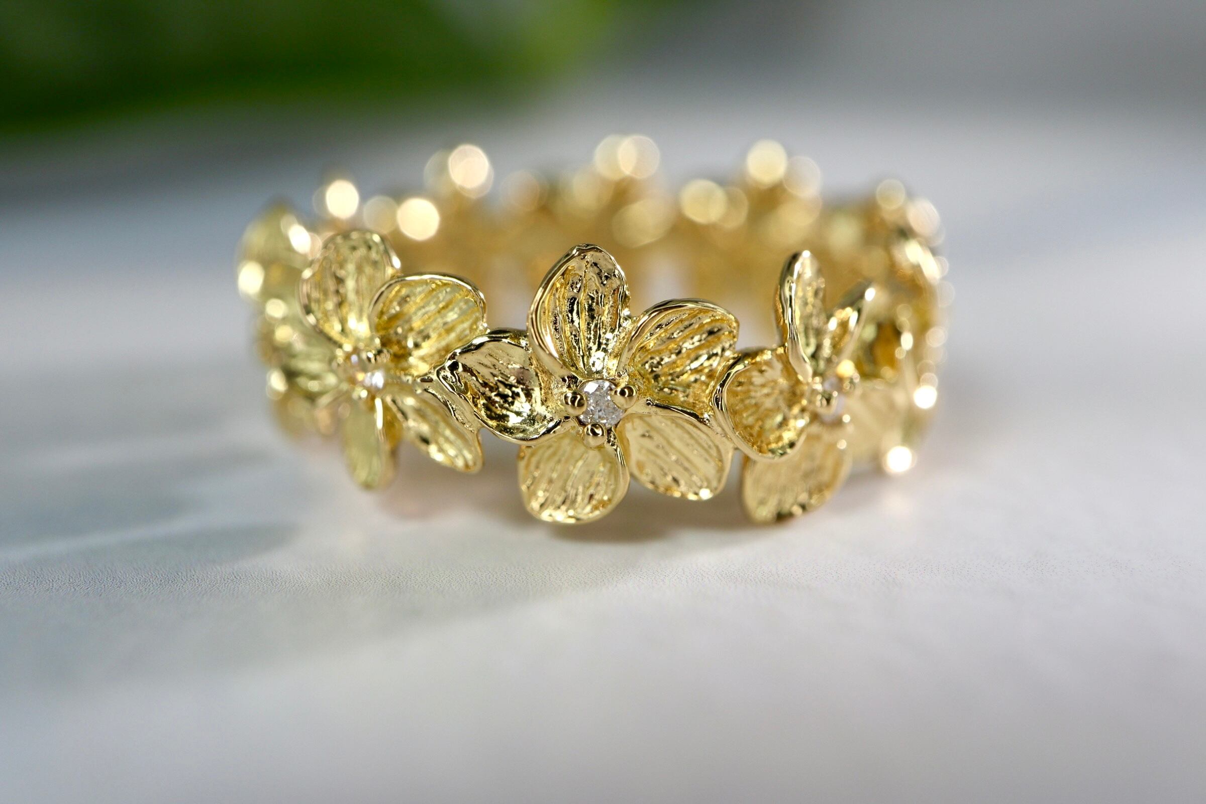 花冠リング✨ K18YG フラワーダイヤモンドD0.08ct