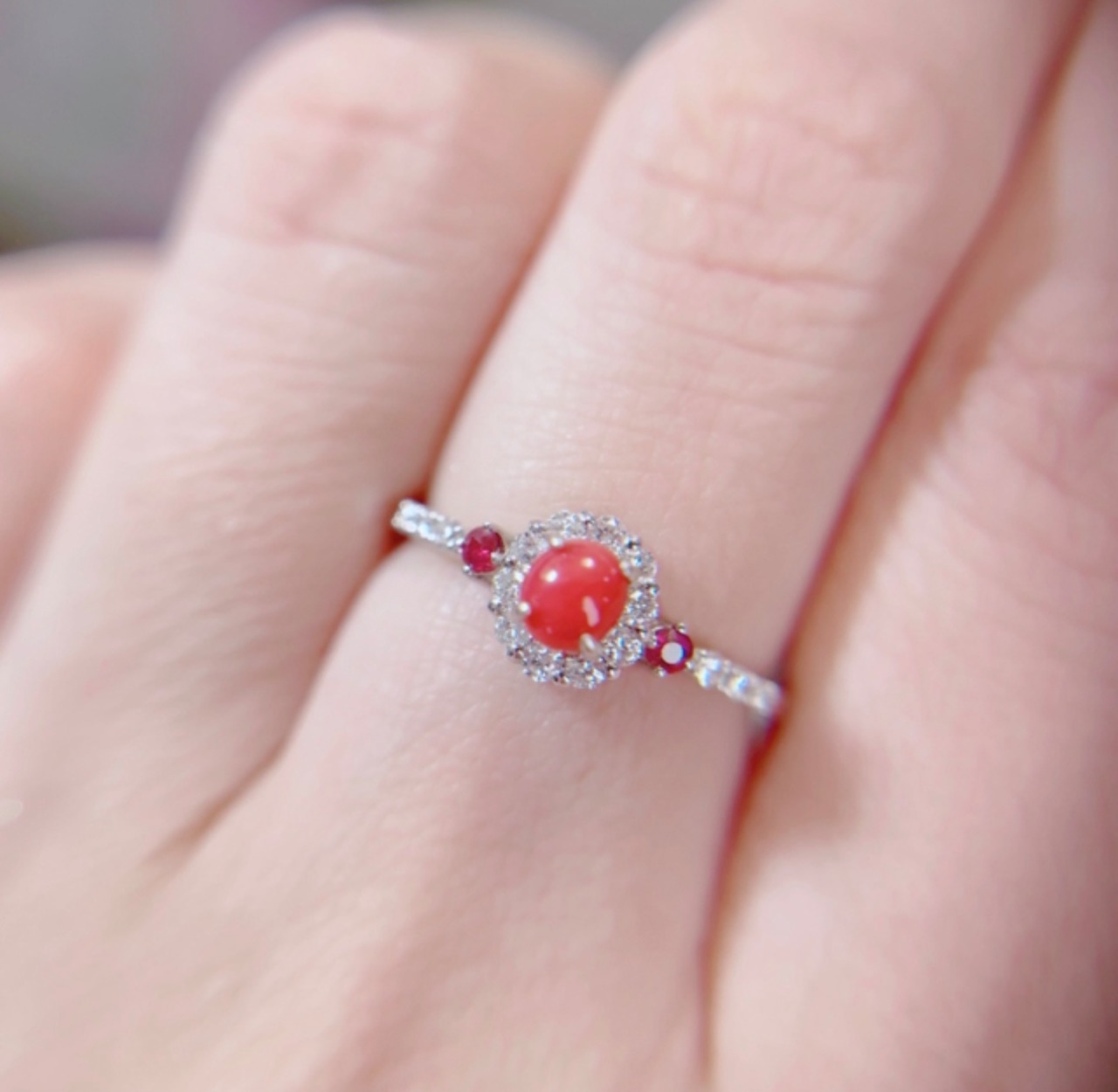 お手元で果実のように鮮やかで丸いフォルムがとっても愛おしくなるリングです。