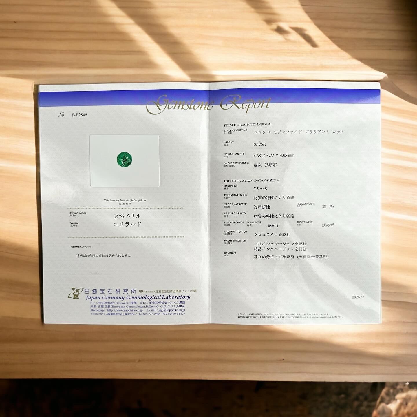 エメラルドではめずらしいラウンドカットですがノンオイルエメラルドとなれば更に珍しくなります。