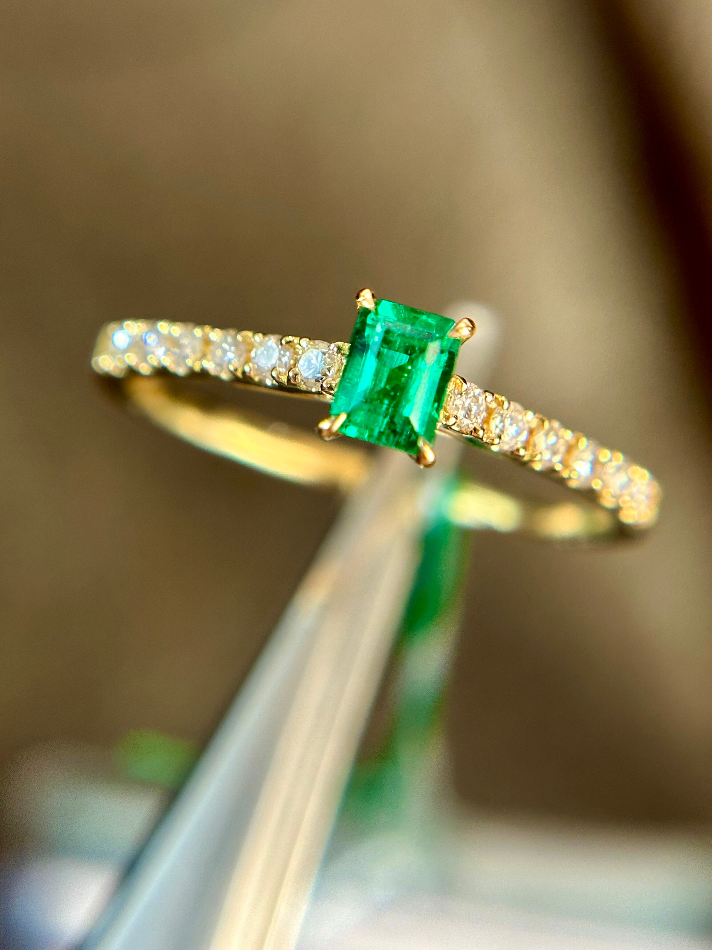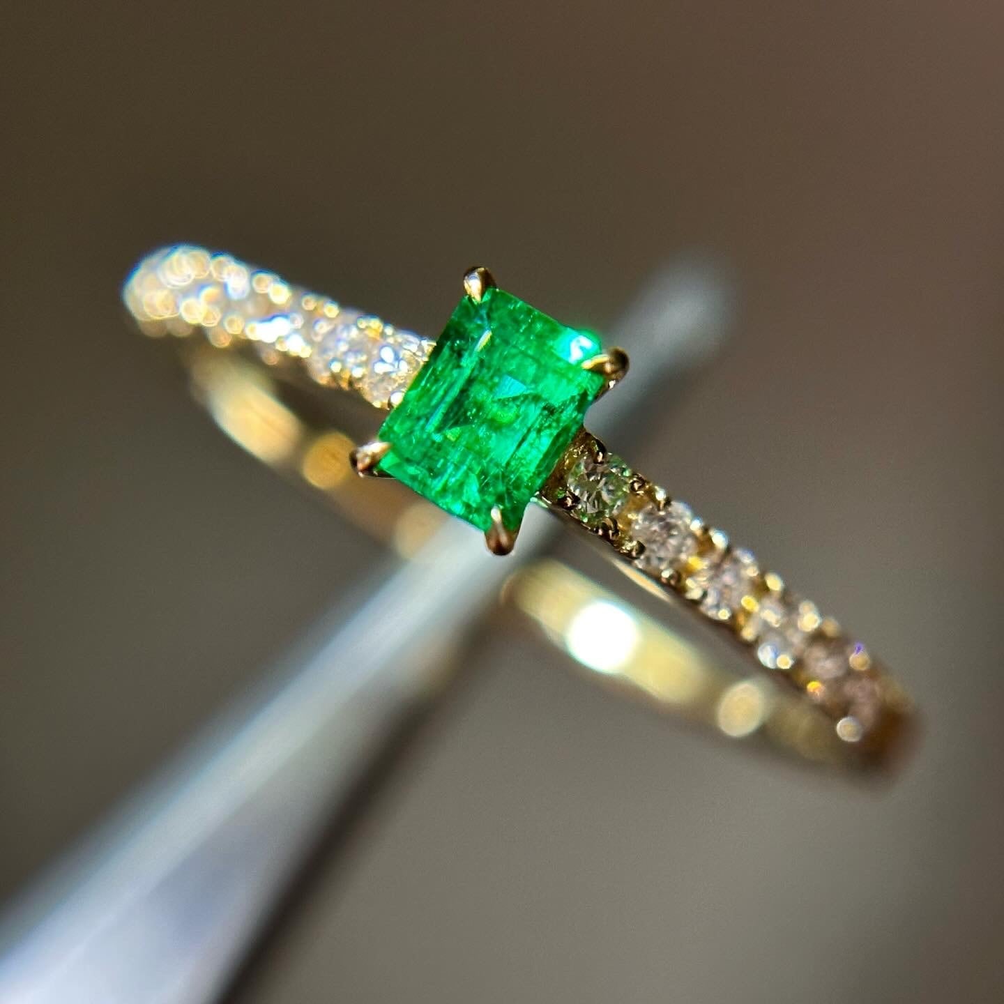 そんな高品質のノンオイルエメラルドにK18にてリッチな印象のリングへお仕立て✨