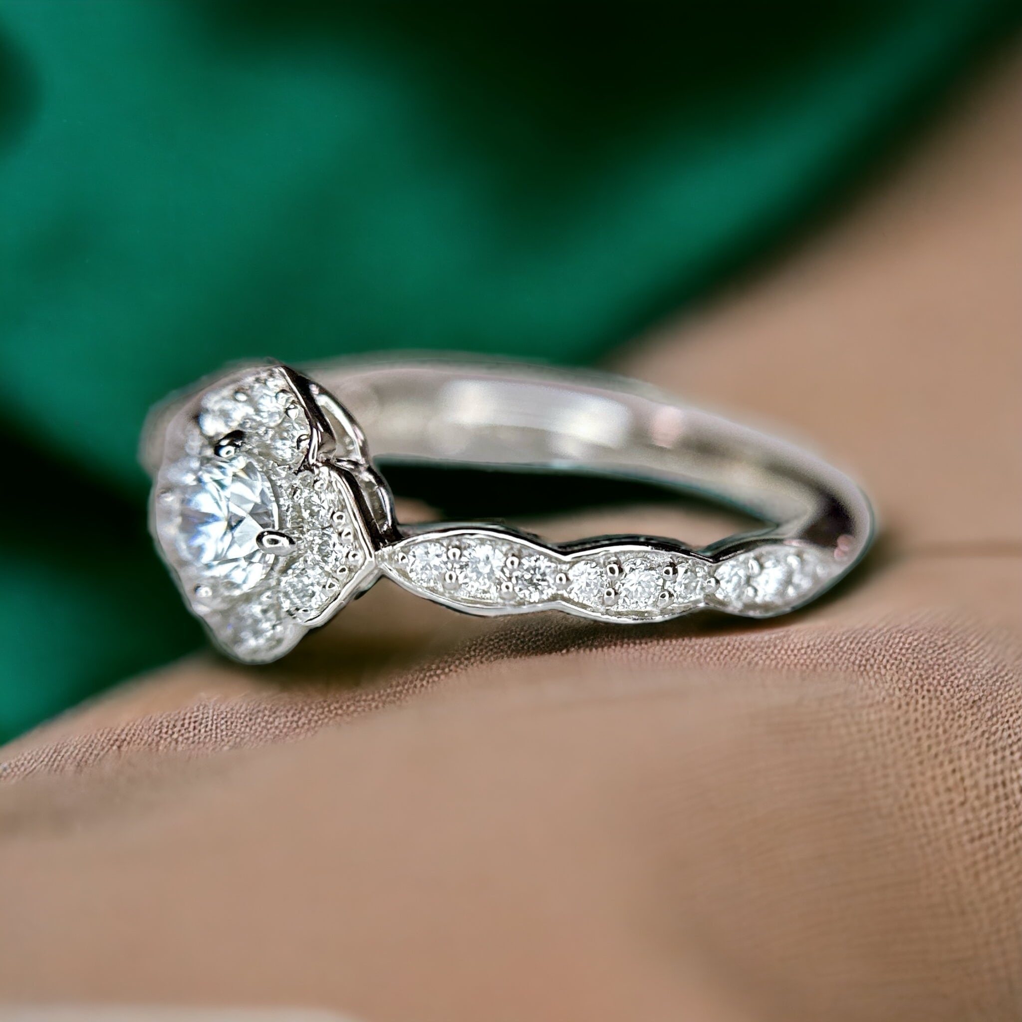 そんな最高に美しいダイヤモンドを主役に花びらのヒラヒラした柔らかさを出すために考え尽くされたデザインです。