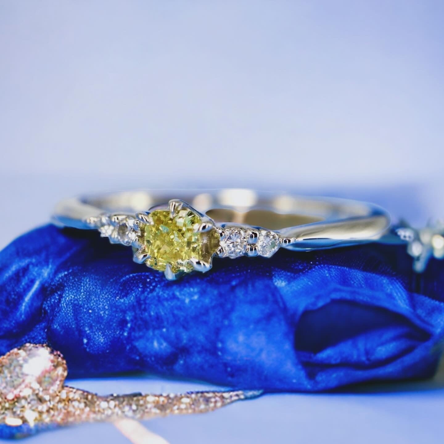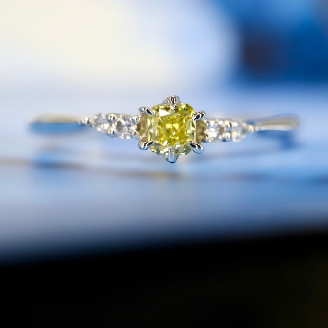 シンプルリングでも存在感があるのはイエローダイヤモンドならではです。