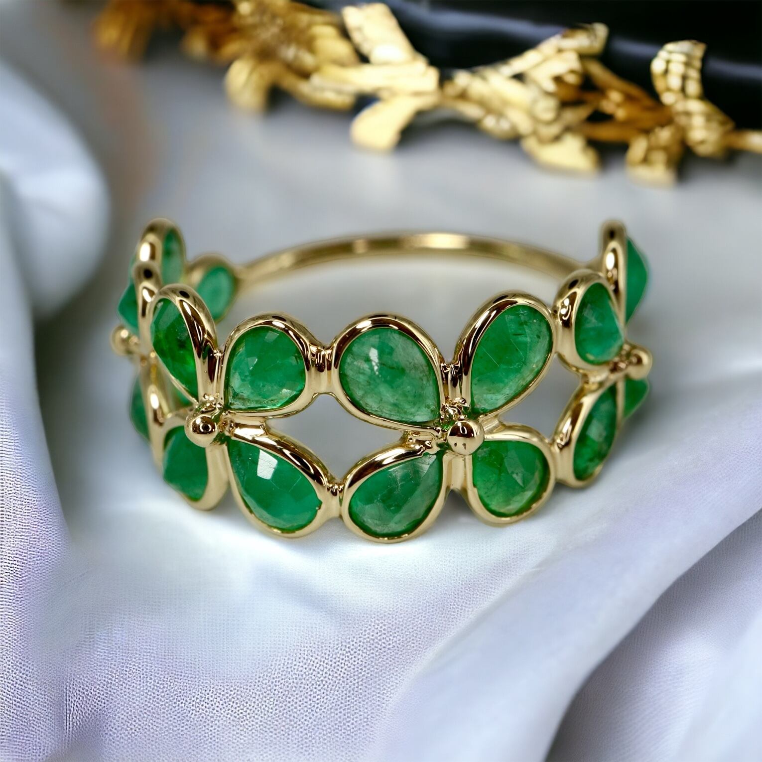 エメラルドフラワーリング✨オールハンドメイドジュエリー