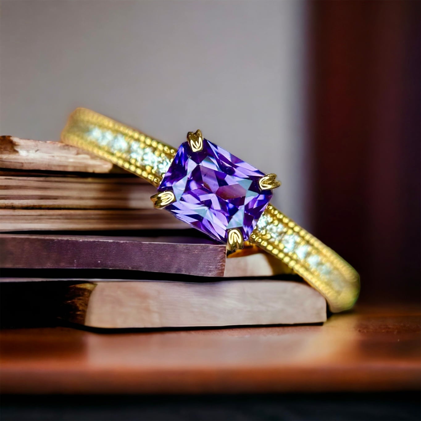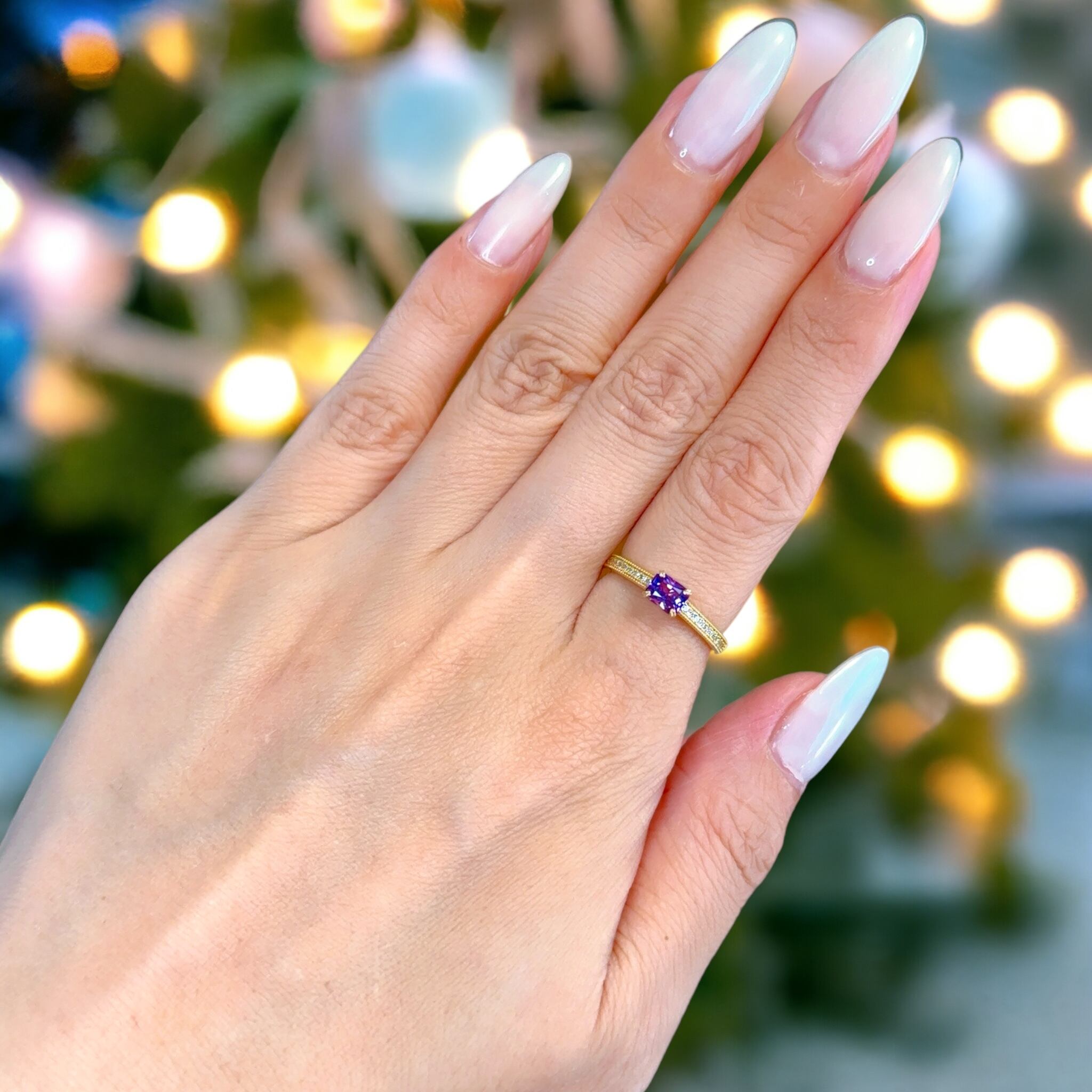 非加熱パープルサファイアダイヤモンドリングK18YG 超美石