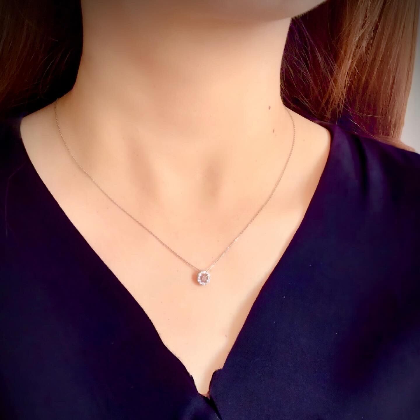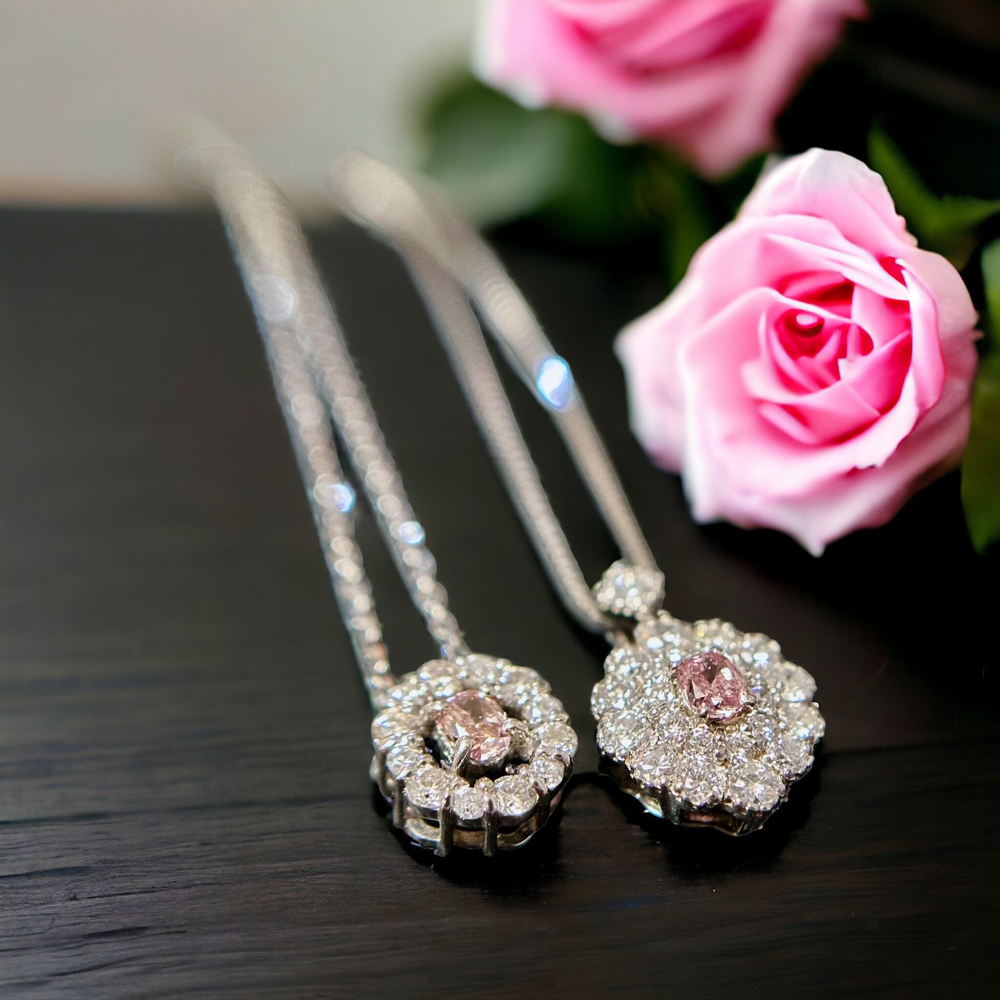 着けやすいサイズ感のネックレスでしっかりとした色のりの良いピンクダイヤモンド達です。