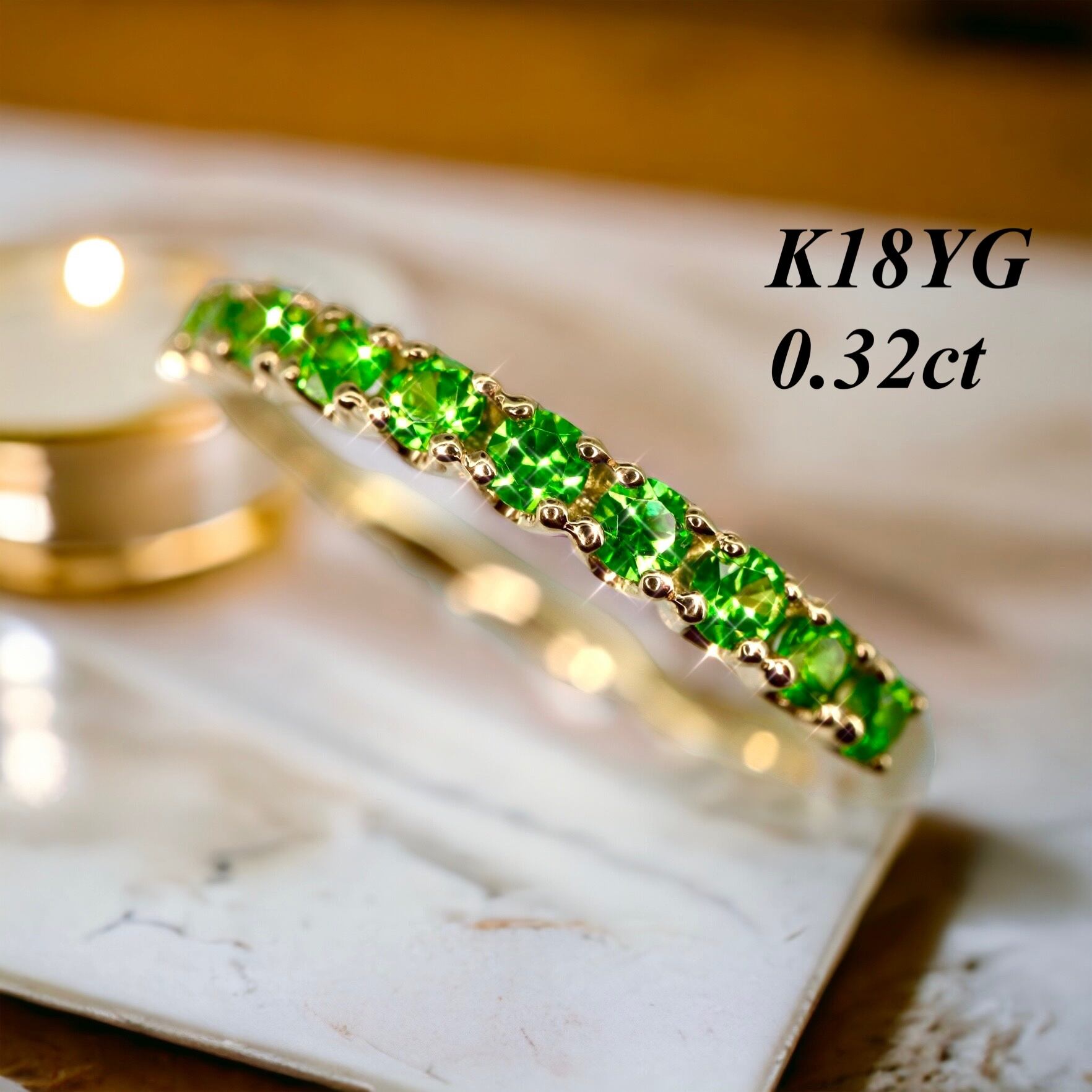 高品質デマントイドガーネットスペシャルエタニティリングK18YG 0.32ct