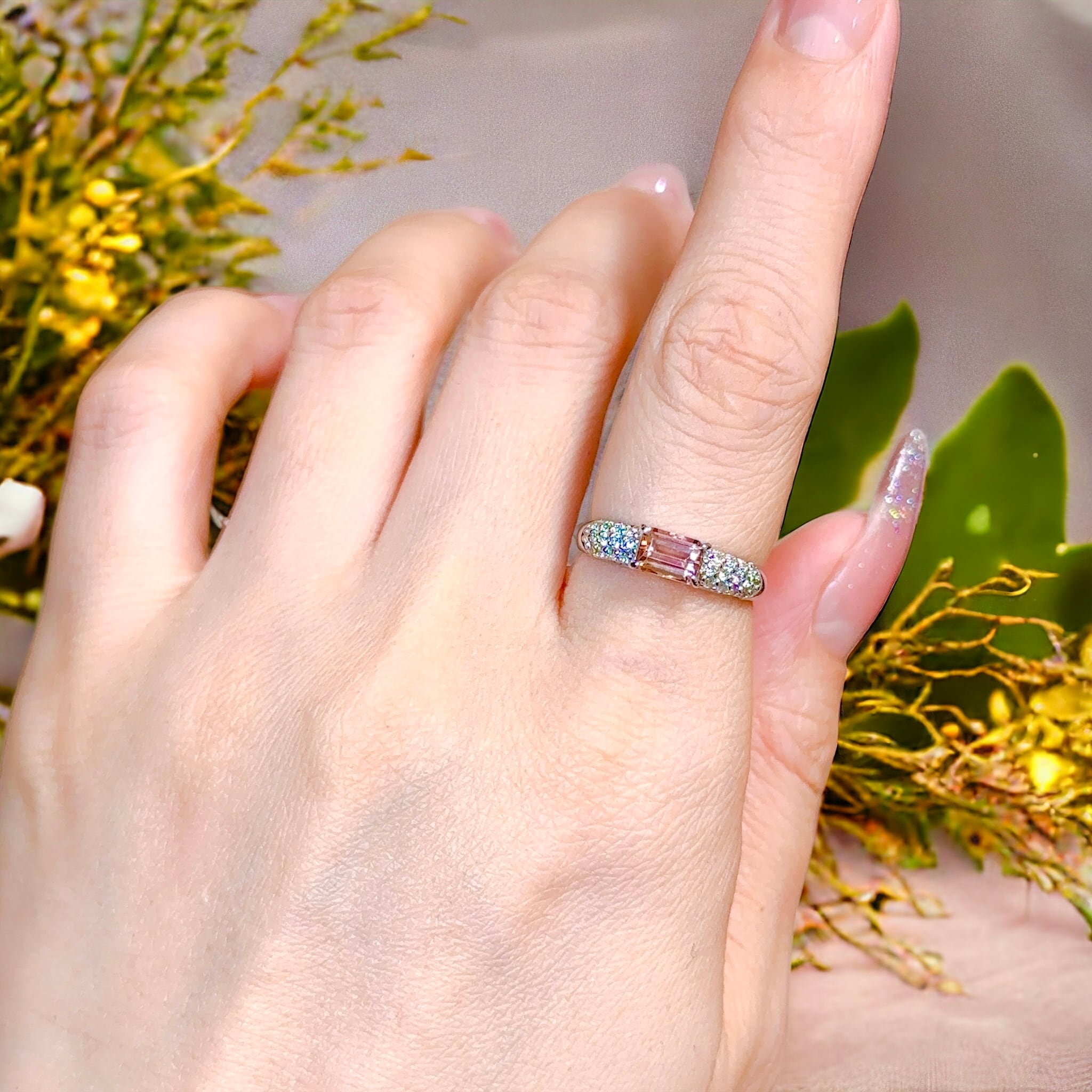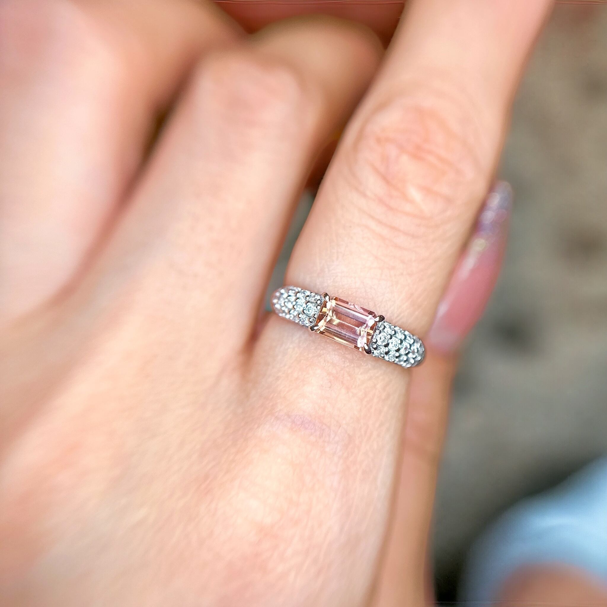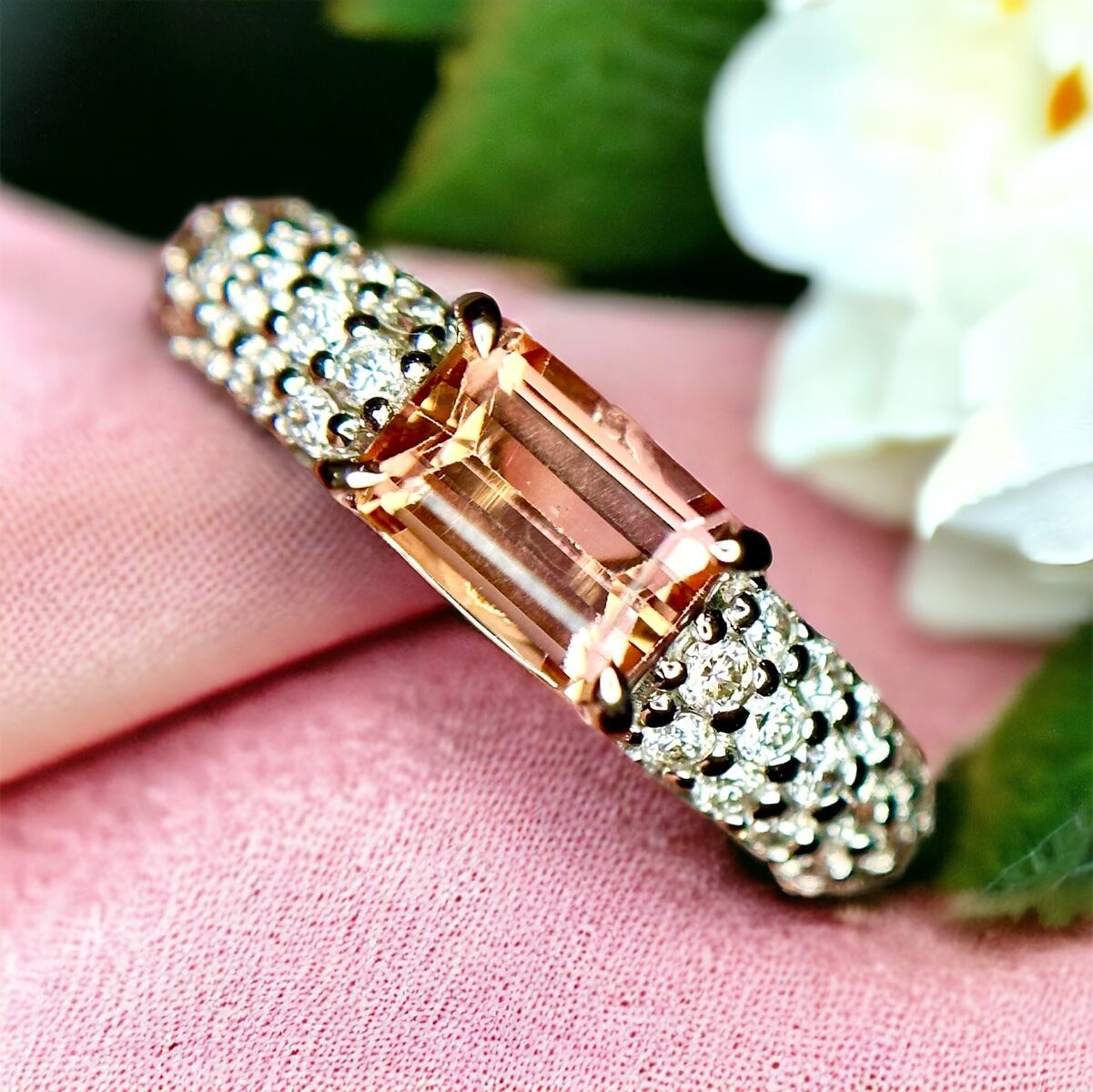 インペリアルトパーズスクエアカットパヴェダイヤモンドリング