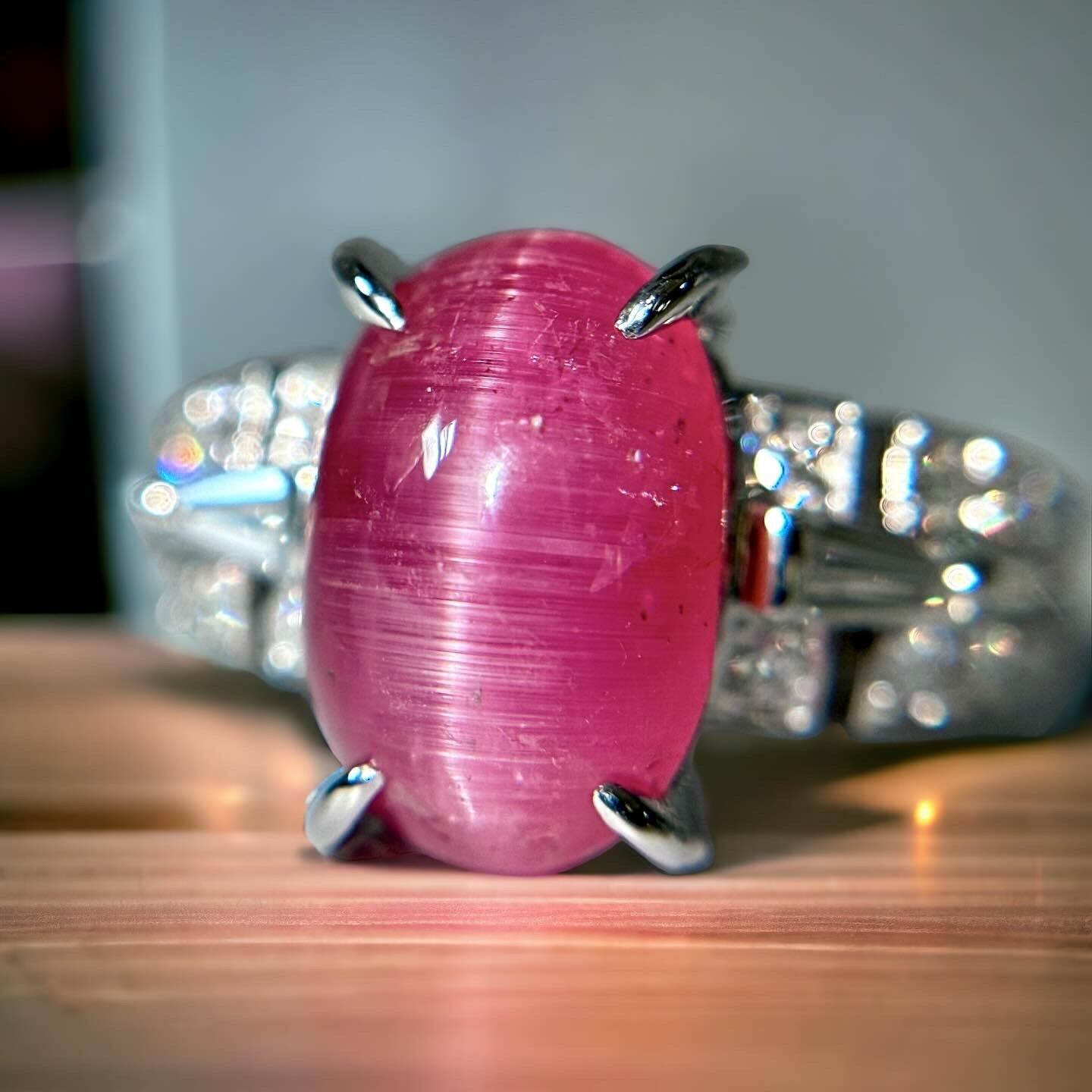 ペツォッタイトキャッツアイダイヤモンドリング 超レアジュエリー