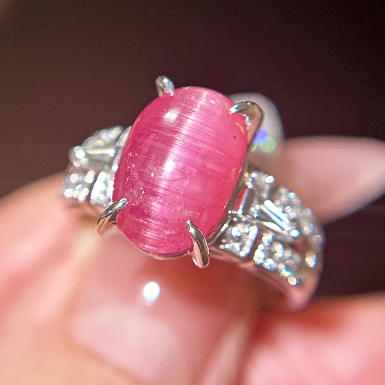 ラズベリーピンクカラーに包まれたこの艶々の宝石は