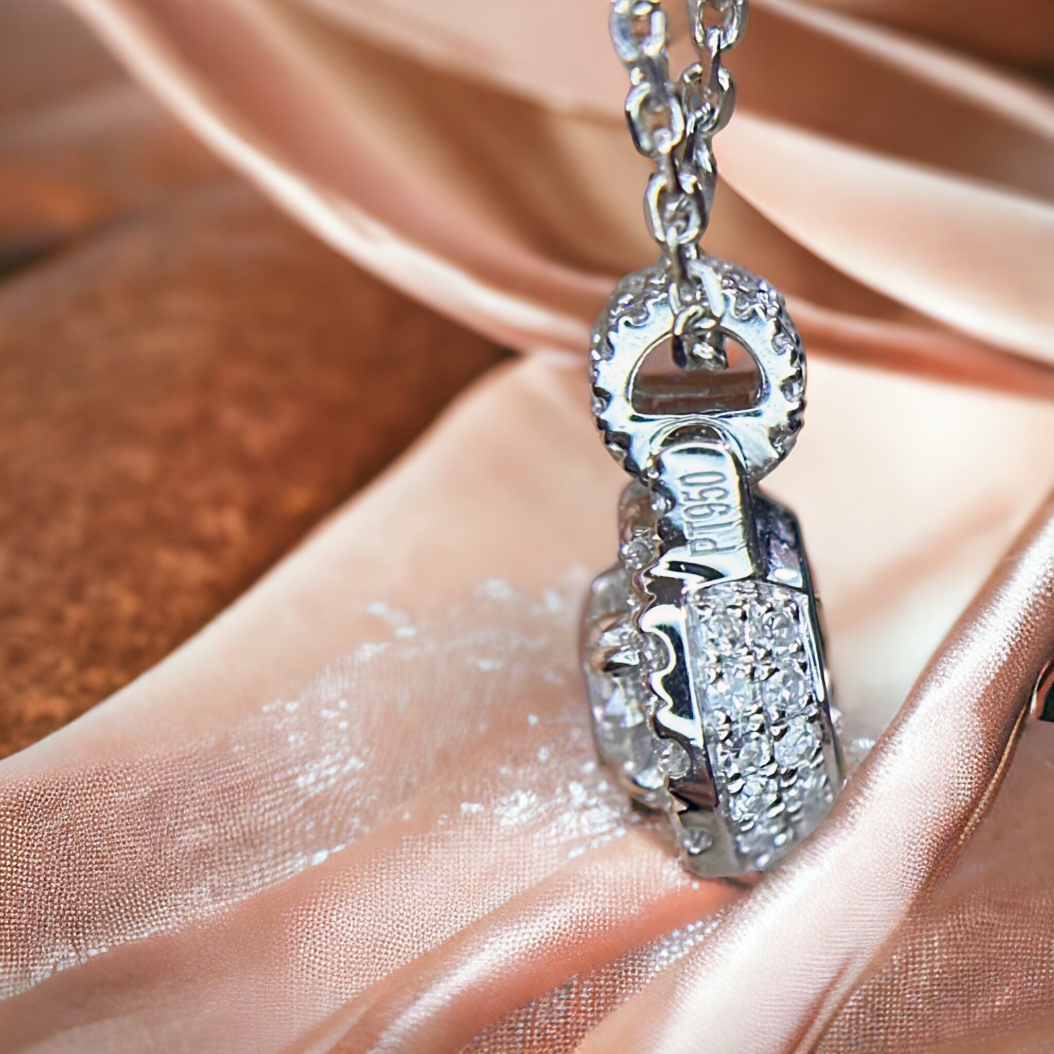 ネックレスはグルリと側面裏側までパヴェダイヤモンドがあしらわれて横からのスタイルまで美しい輝き。