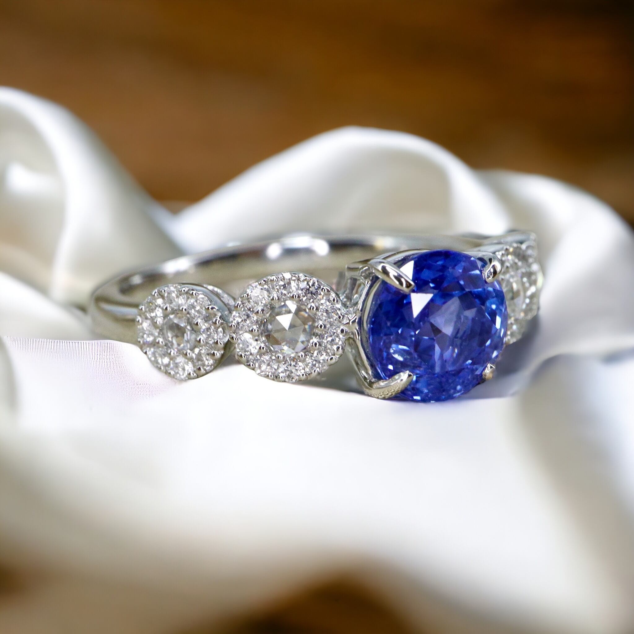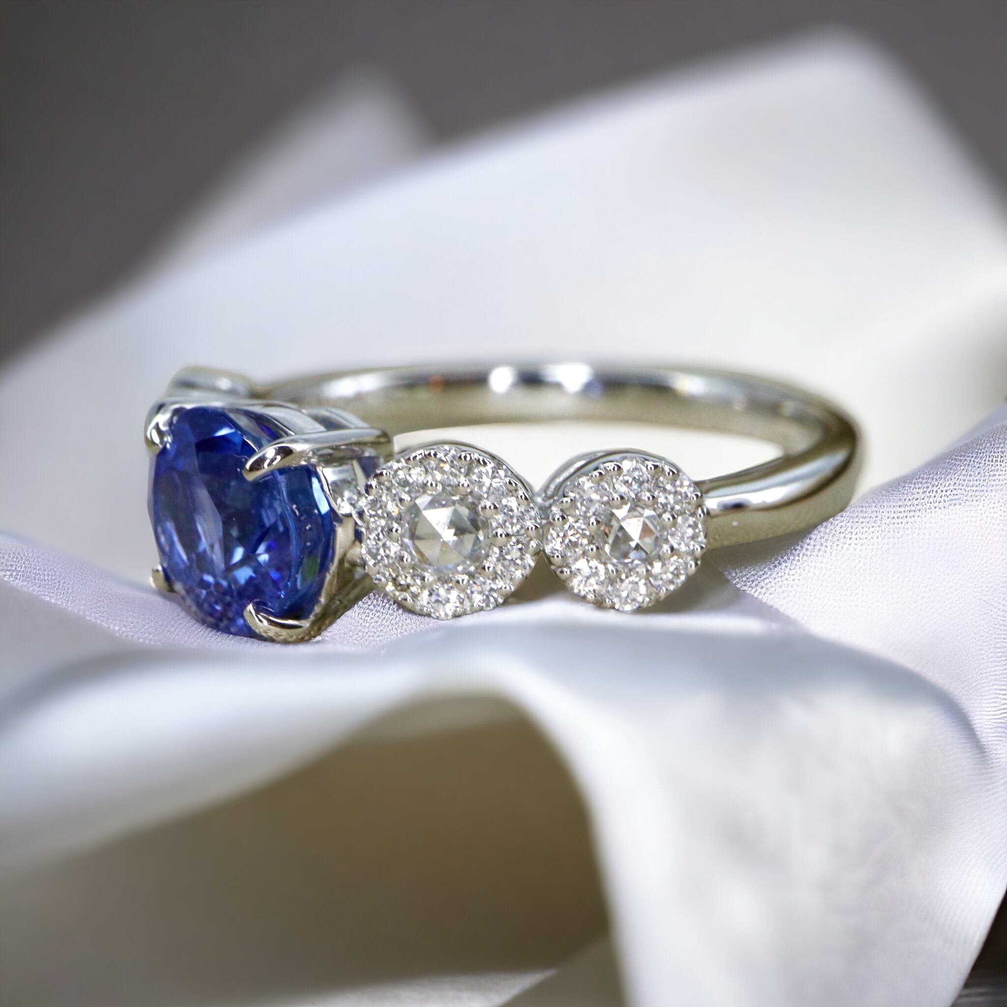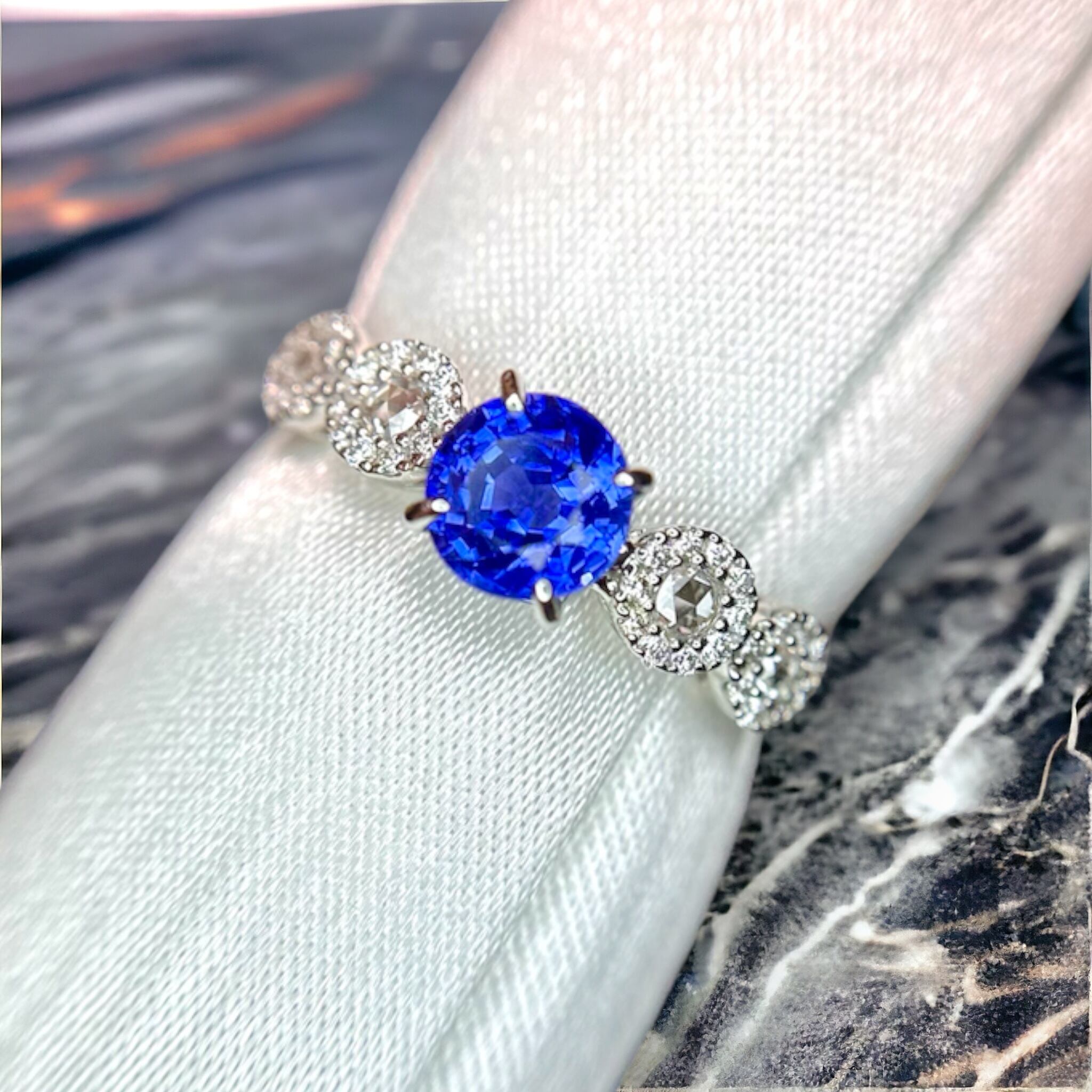 高品質ブルーサファイアローズカットダイヤモンドリングpt950S1.219ctD0.23ct