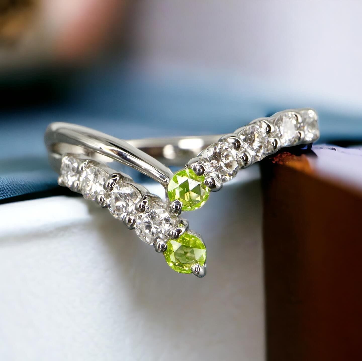 イエローグリーンダイヤモンドV字デザインリングpt950計D