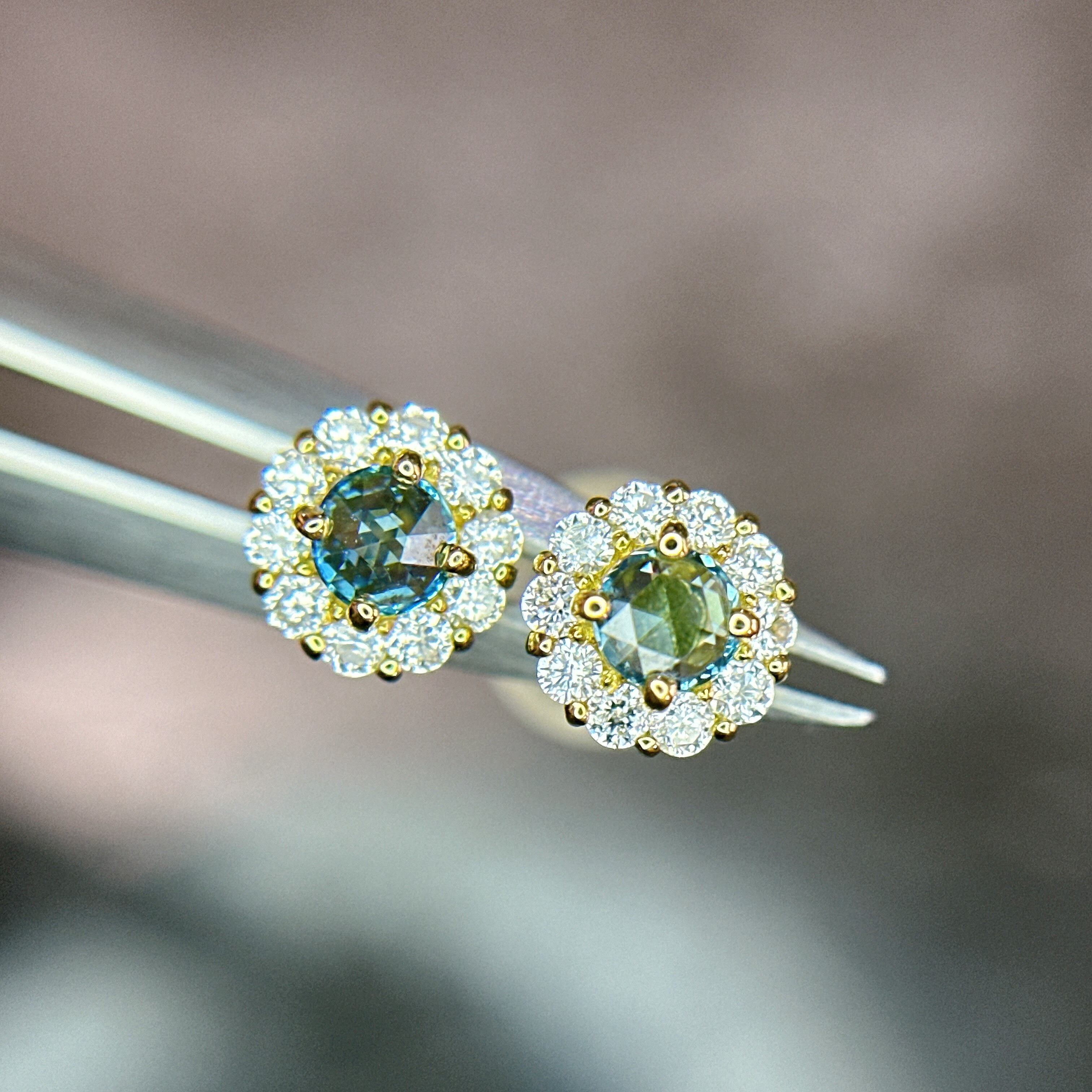 良質なトリートブルーダイヤモンドローズカットを厳選してピアスをお作り。